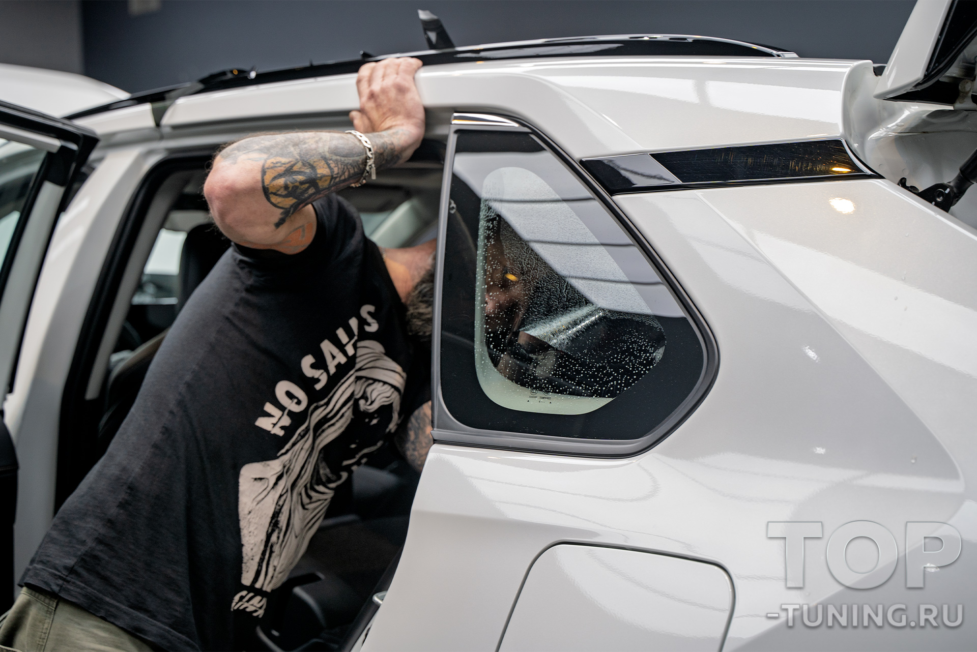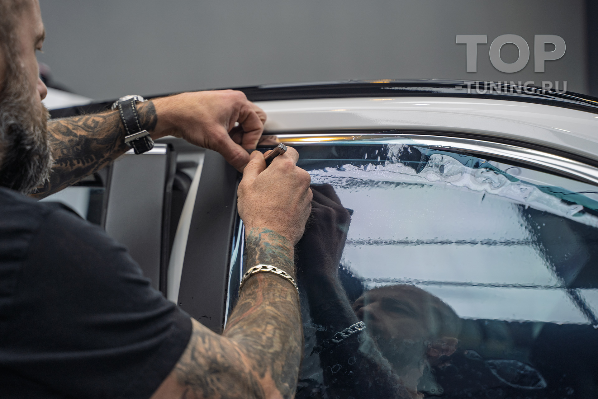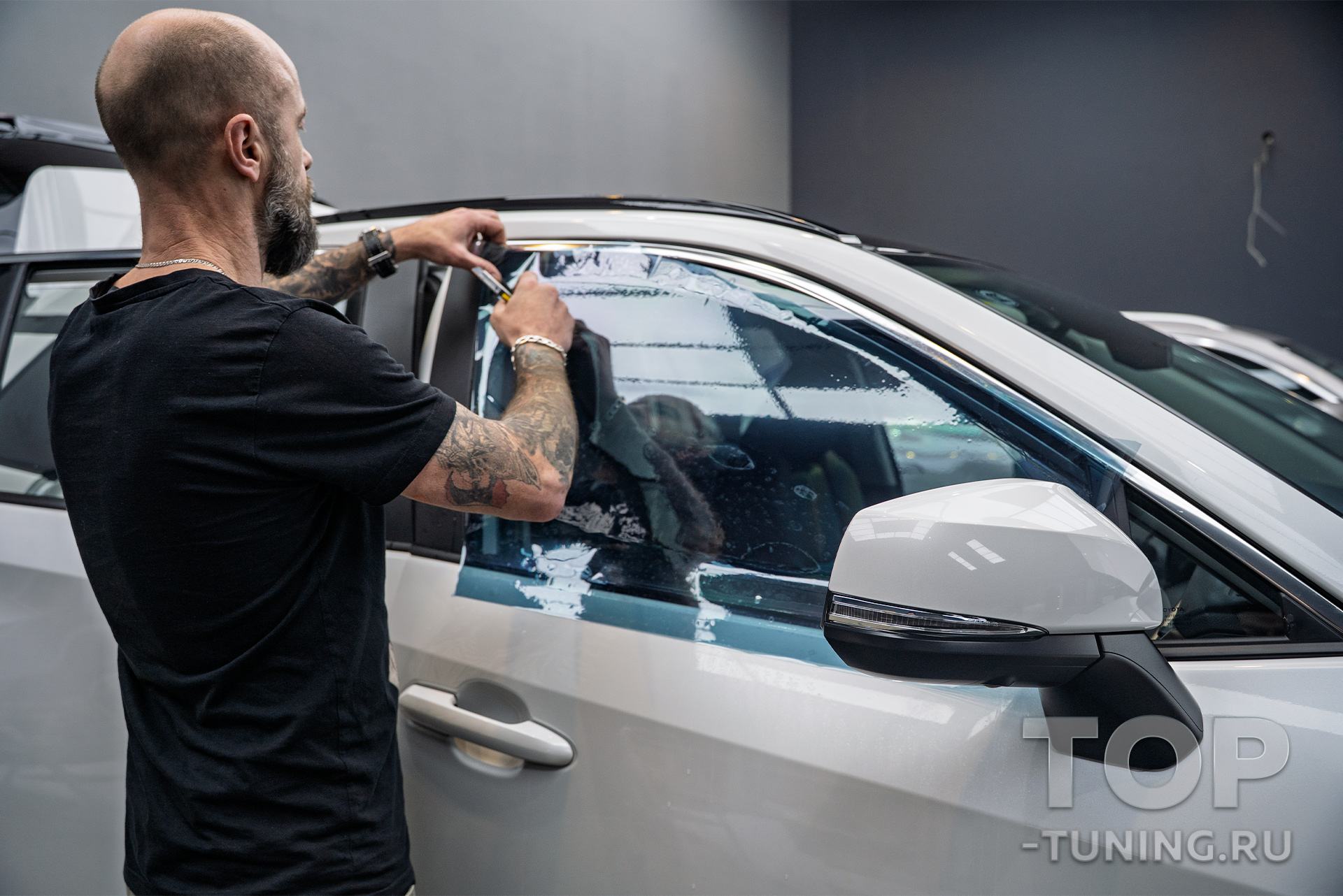 Перед опытными мастерами Топ Тюнинг Москва стояли задачи по тонировке стекол, оклейке оптики и внутренних порогов, а также по установке сеток в решетку радиатора.