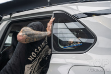 Для тонировки передних боковых стекол и задней полусферы кроссовера была задействована премиум-пленка STEK NEX южнокорейского производства. Атермальная неметаллизированная пленка поглощает не только ультрафиолет, как обычная тонировка, но и лучи инфракрасного спектра, существенно понижая степень нагрева салона Тойота Вайлдлэндер.