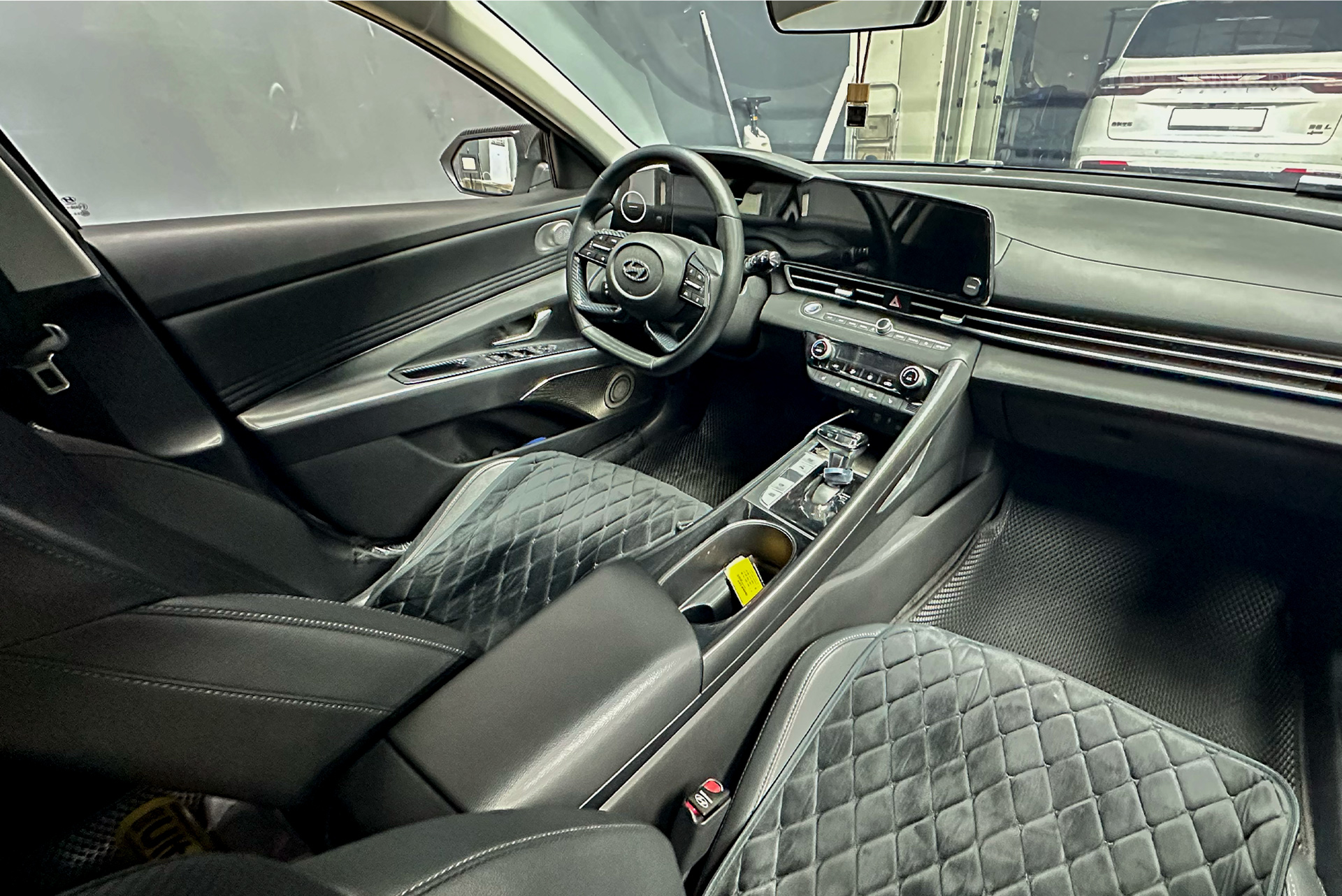 Hyundai Elantra последнего поколения — не просто современный и технологичный седан, а автомобиль, который располагает к персонализации. Владелец уже установил эффектный тюнинг-обвес, после чего решил приступить к модернизации интерьера. Добавить во внешность салона больше эмоций и уюта, сделав каждую поездку более атмосферной. С такой целью обратился в Топ Тюнинг Москва хозяин Хендай.