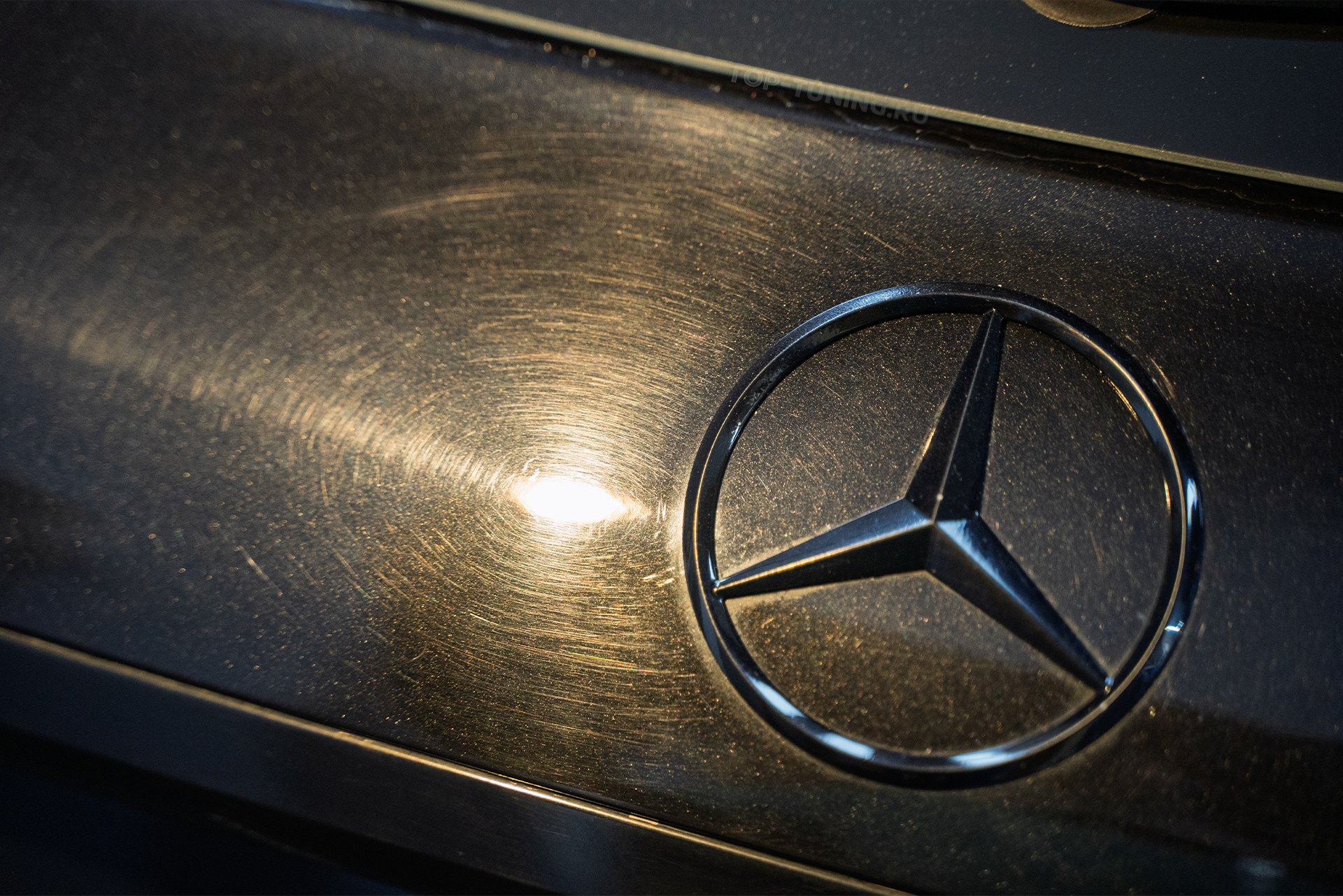 К сожалению, при работе с особо глубокими сколами на кузове Мерседес возникают ограничения — целью стало повышение общей эстетики лакокрасочного слоя и стабилизация проблемных зон, чтобы уберечь их от дальнейшей прогрессии. Визуально кузов снова зазвучал глянцем, в котором можно увидеть собственное отражение.