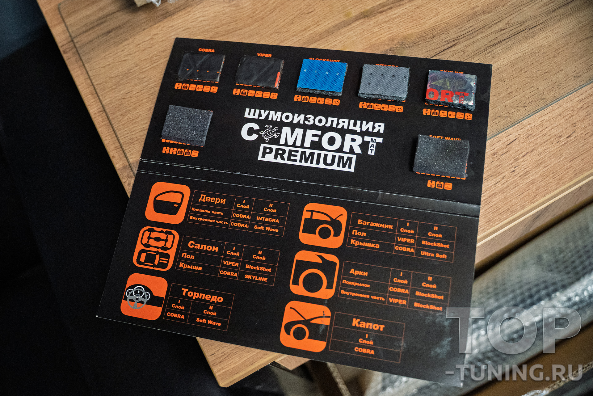 Для проведения дооснащения хозяином были выбраны высококлассные материалы от ComfortMat, которые сформировали эффективную четырехслойную систему вибро и звукоизоляции. Каждый слой выполняет строго определенную функцию для максимального подавления разных типов шумов: