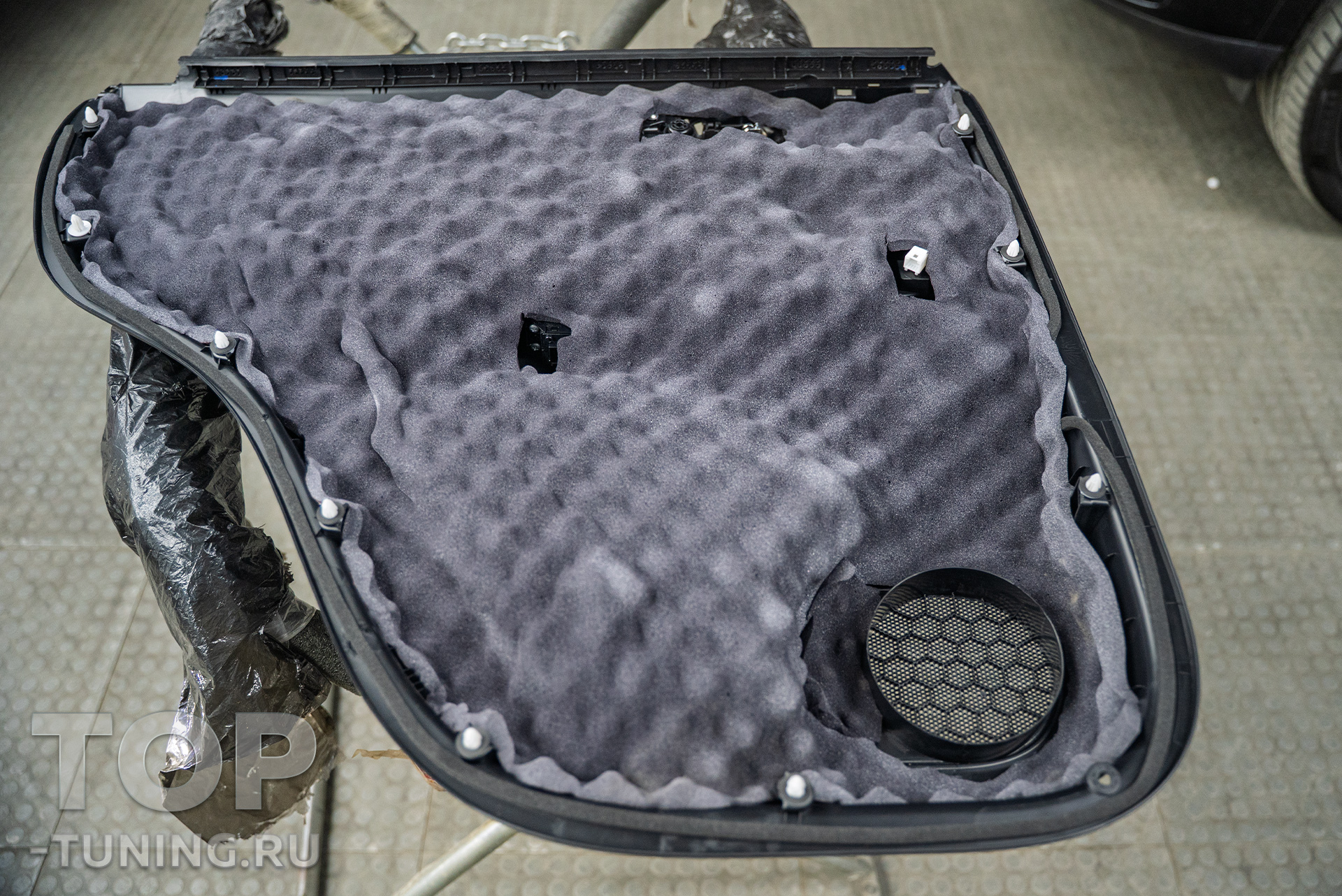 Базовый вибродемпфирующий слой: На очищенный и обезжиренный металл кузова (дверные панели, поверхности арок) наносится материал, эффективно гасящий резонансные колебания металла. Этот слой борется с самой причиной шума – резонация кузовных панелей, устраняя неприятные вибрации и низкочастотный гул.