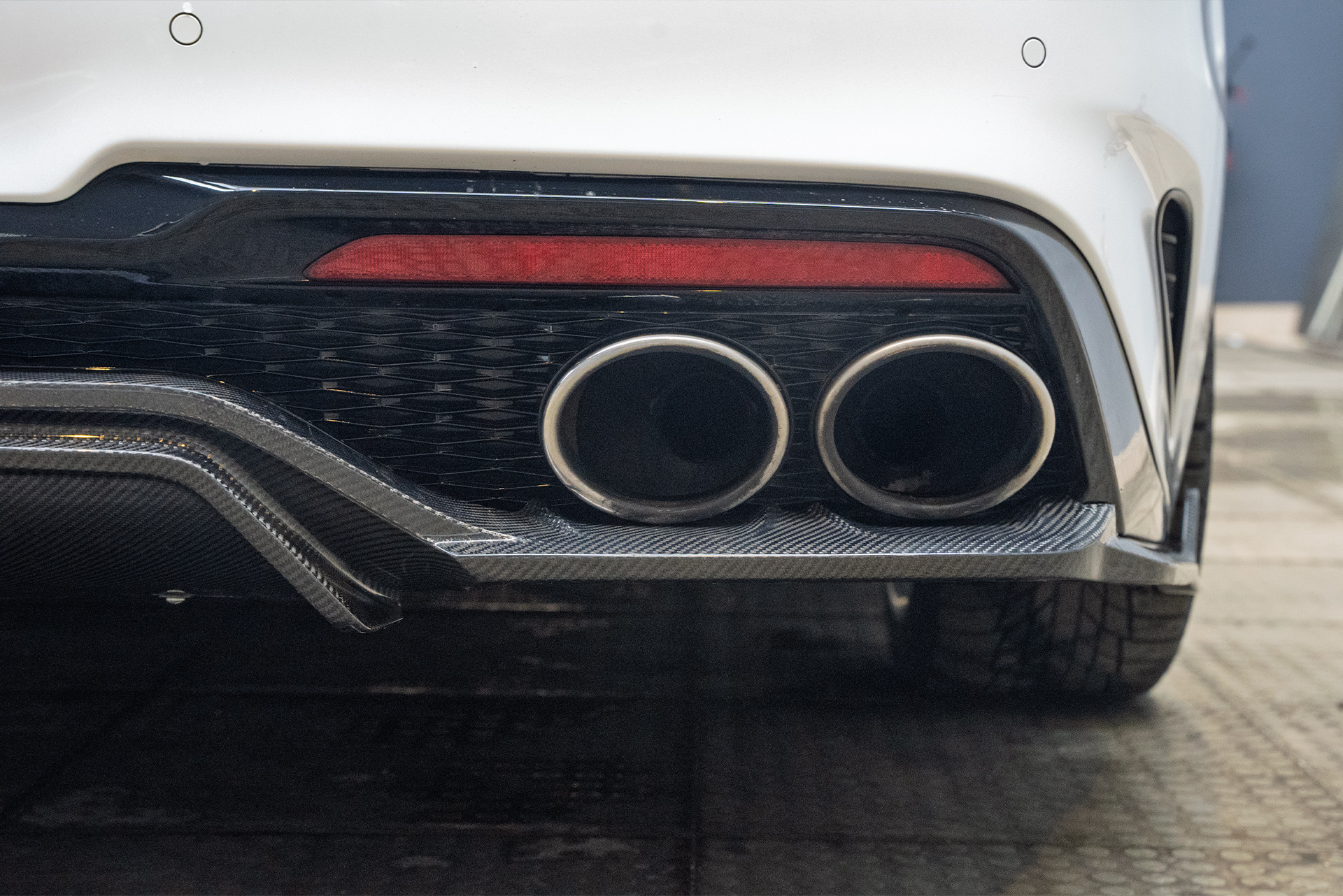- Задний диффузор в конфигурации Tribute Edition. Самая массивная и впечатляющая деталь комплекта. Диффузор буквально огибает всю заднюю часть автомобиля, добавляя ей визуальной ширины и брутальности. Версия Tribute Edition спроектирована так, чтобы идеально сочетаться со штатными сдвоенными насадками выхлопной системы, создавая гармоничный, заводской вид без необходимости резать или варить выхлоп.