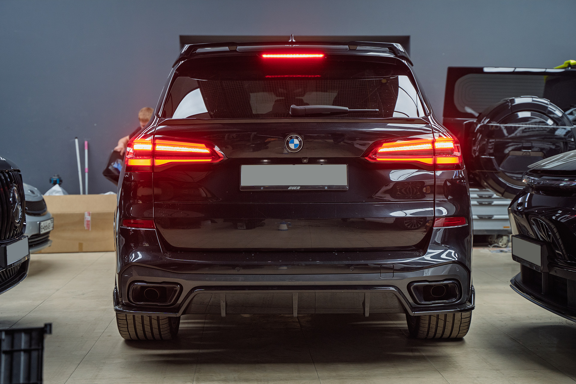 Модернизация BMW X5 G05 тюнинг-комплектом: диффузор, спойлер, юбки