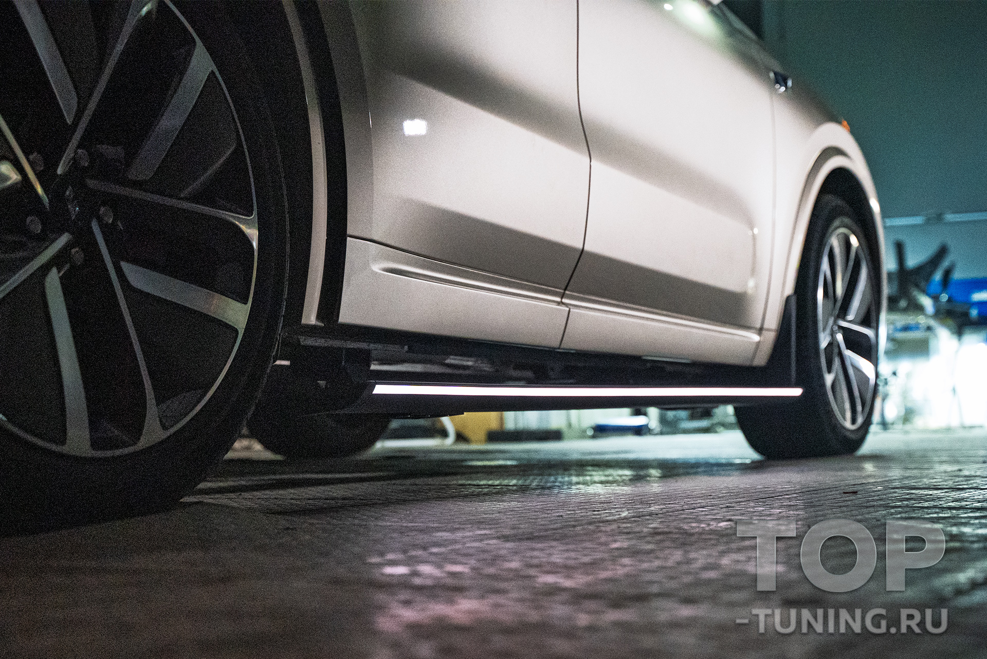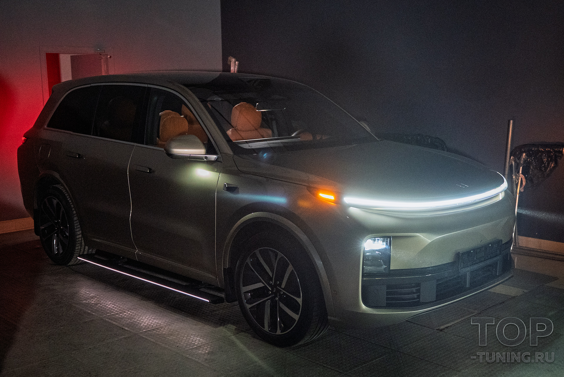 Мастерами Топ Тюнинг Москва был установлен комплект электрических порогов-ступеней, аналогичных тем, что доступны только флагману Li Auto – Lixiang L9. В отличие от оригинальных элементов, новые пороги также обладают стильной подсветкой по периметру.