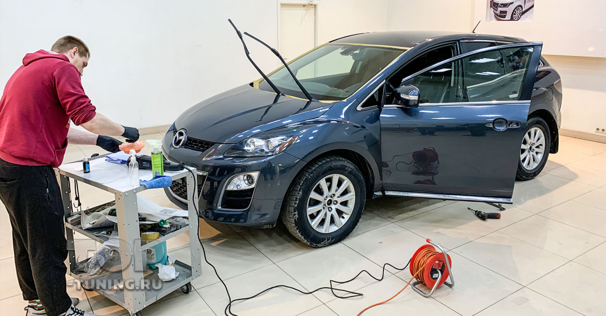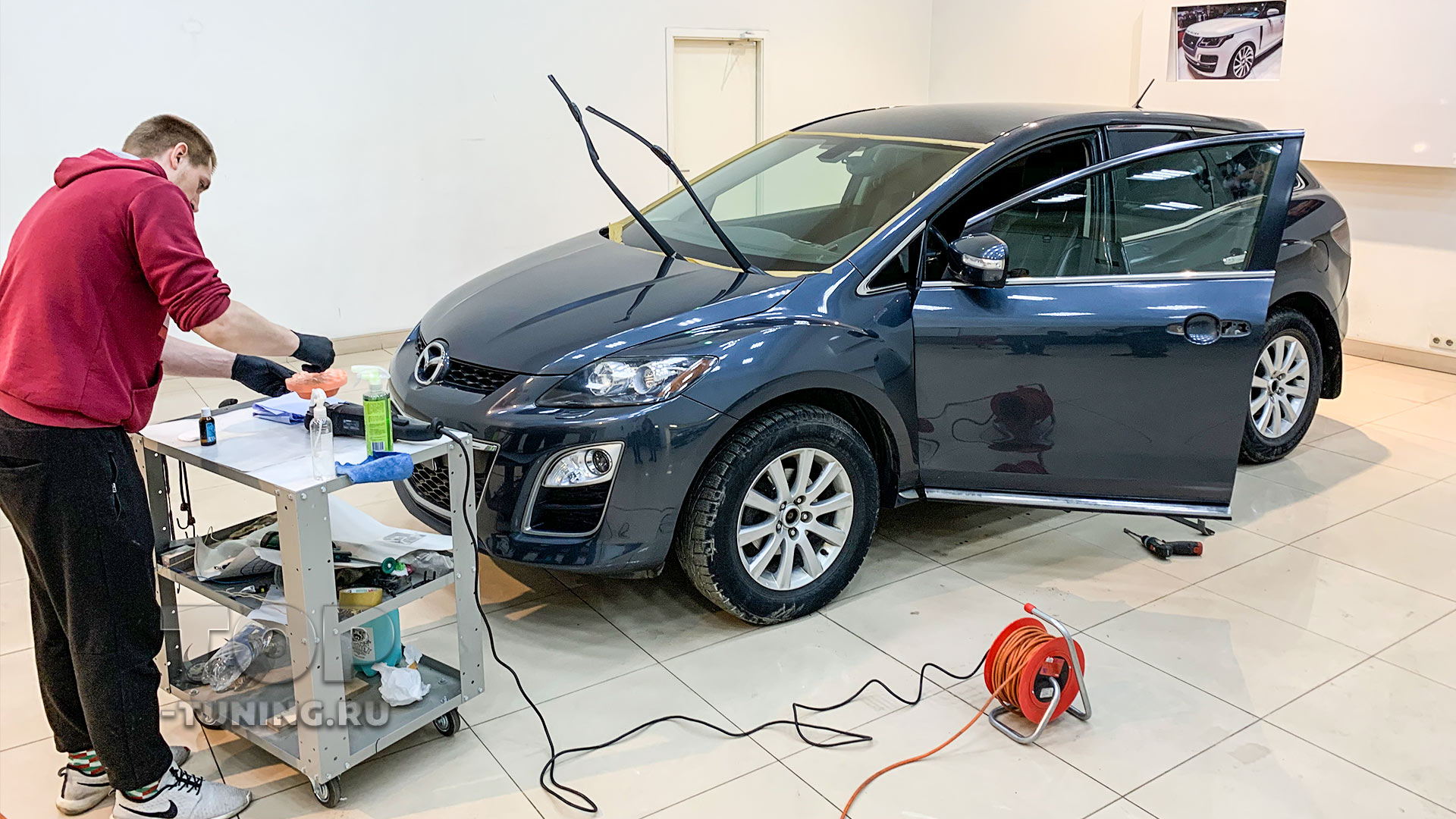 Автомобиль MAZDA CX-7 2010 года выпуска. Перед началом нанесения гидрофобного состава, мы выполнили очищающую полировку стекол и приступили к нанесению состава. В этом фильме мы поставили задачу подробно объяснить принцип работы системы Антидождь в сочетании с московской зимой, перепадами температур и что самое важное - ответить на вопрос, совместимости керамики для стекол и антигололедными реагентами реагентами.
