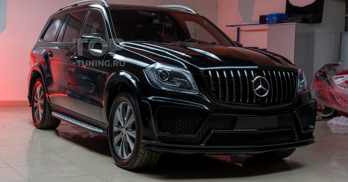 Передний бампер для модернизации внешнего вида Mercedes GL X166 с 2012 по 2015 год выпуска. Изготовлен из композитного пластика. Поставляется в...