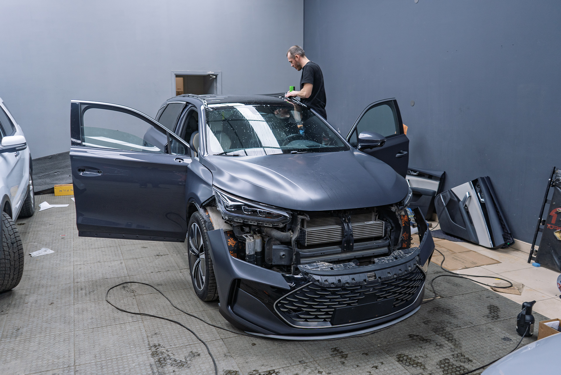 Оклейка всего кузова Биайди Танг сатиновой антигравийной пленкой
