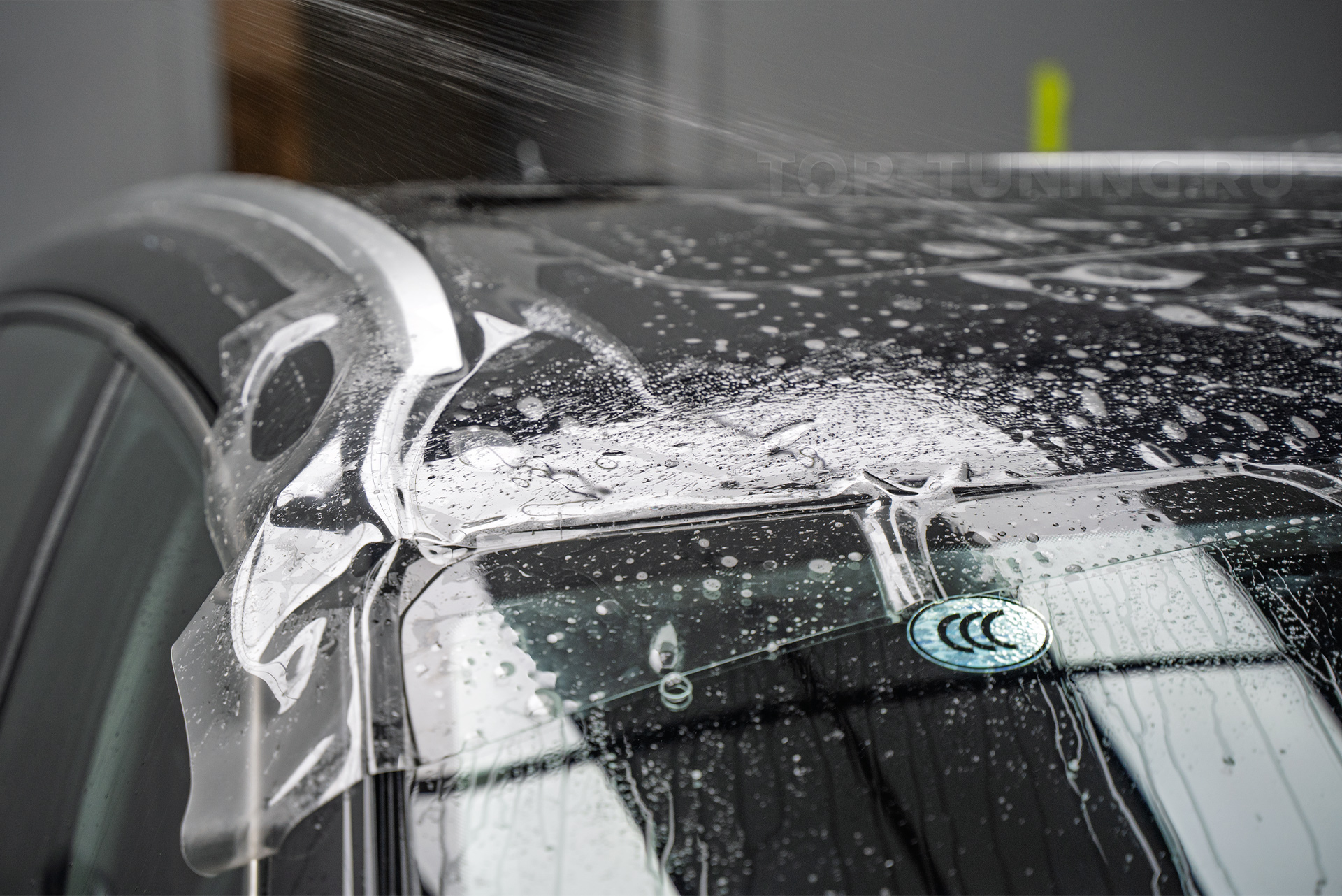 При этом плёнка остаётся полностью прозрачной, не мешает работе дворников и служит до 5 лет.