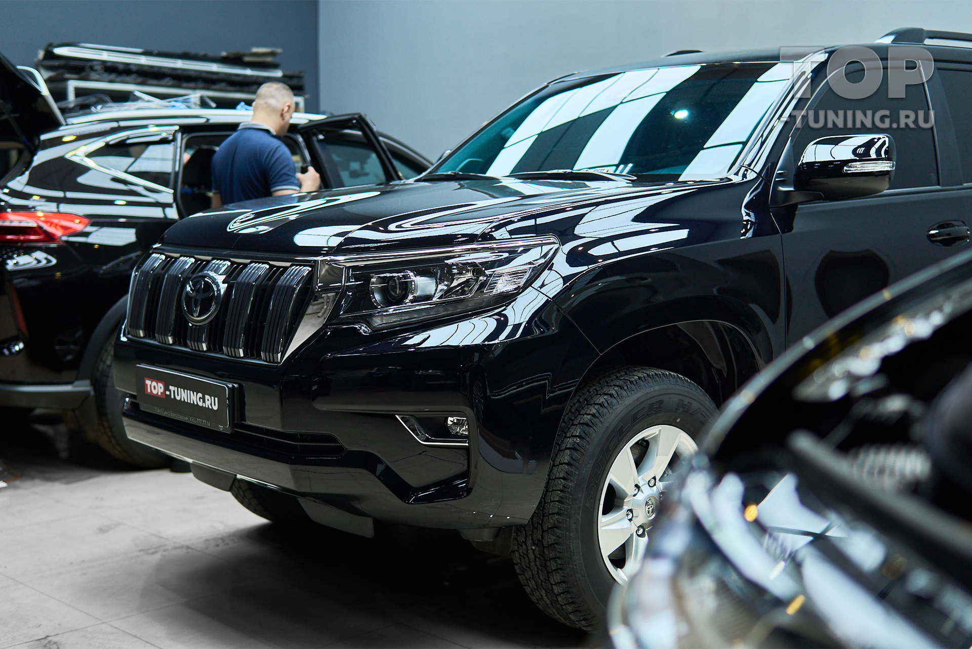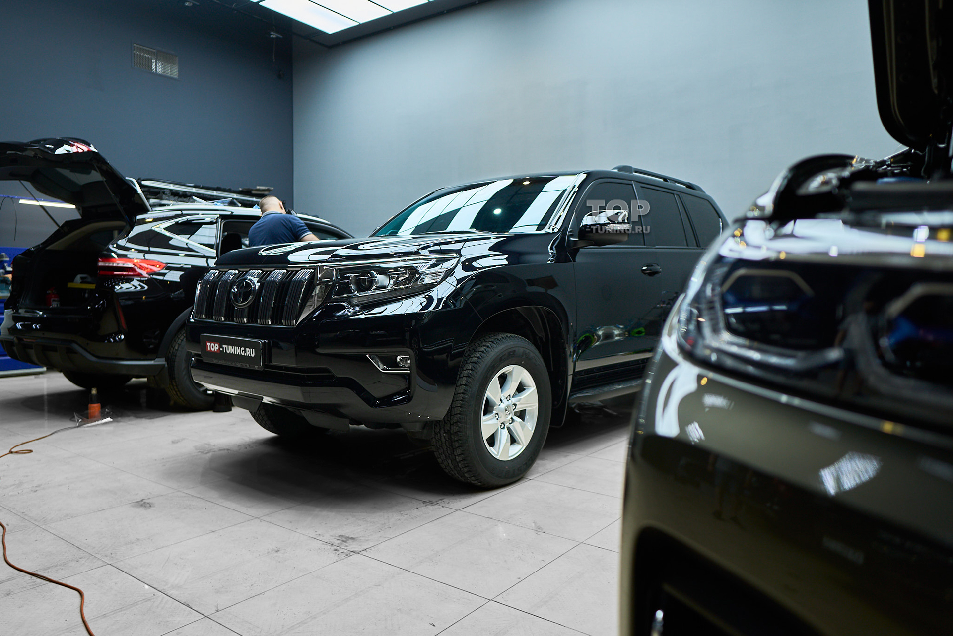 Владелец японского внедорожника решил обезопасить любимый автомобиль от появления новых царапин и сколов. В ходе работы специалисты установочного центра Топ Тюнинг Москва провели абразивную полировку кузова, восстановили блеск ЛКП, а затем покрыли защитной пленкой всю переднюю часть кузова Toyota Land Cruiser. Перед оклейкой в детейлинг центре специалисты проводят трехфазную мойку, очистку и обезжиривание оклеиваемых поверхностей.