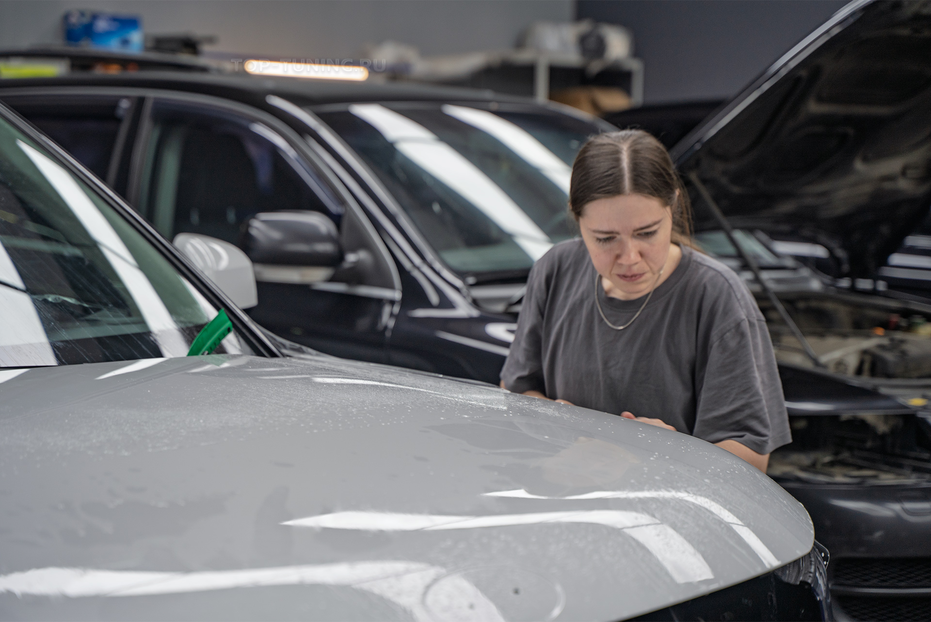 Совсем новый Hyundai Santa Fe V с минимальным пробегом поступил в стены установочного центра Топ Тюнинг. Владелец не хотел превращать первую зиму и весну в лотерею «поймаю камень — не поймаю». Российский климат, перепады температур, агрессивные реагенты и абразив с дорог быстро «съедают» даже свежий лак.