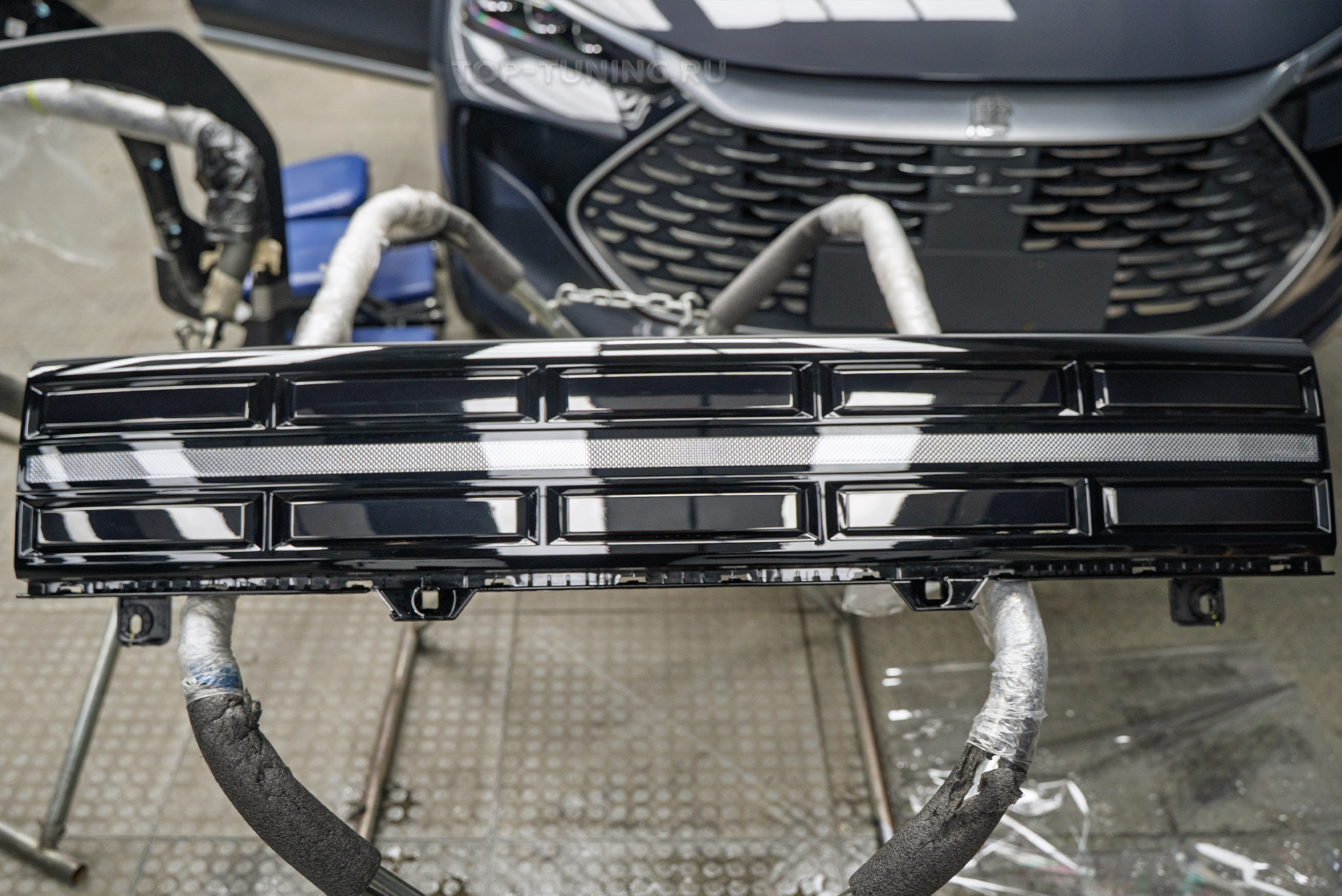 Установка сетки-фильтра в передний бампер Hyundai Santa Fe 2023+