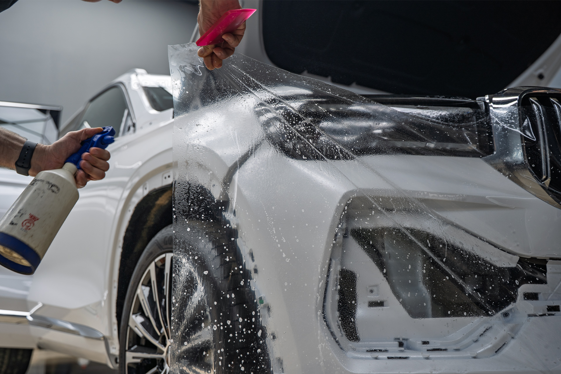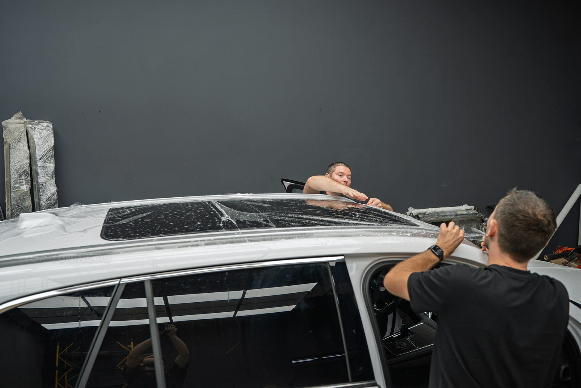 Кузов Geely Monjaro рестайлинг в антигравийную пленку в Топ Тюнинг Москва