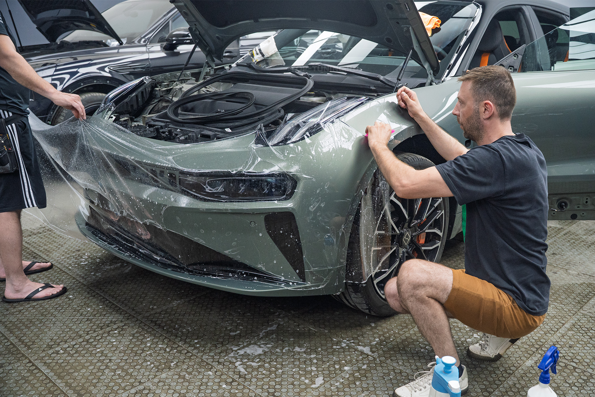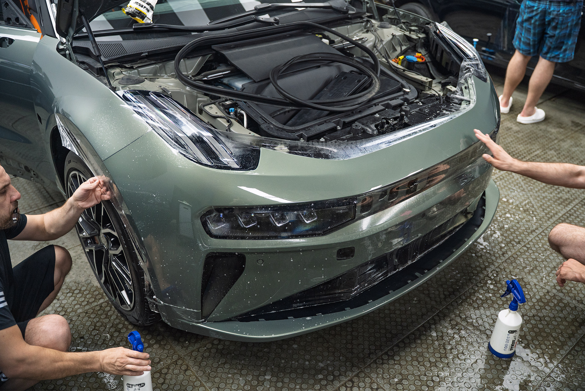 Оклейка Zeekr 001 — процесс ювелирный. Рестайлинговая версия имеет множество датчиков, камер и лидаров, работу которых нельзя нарушить.