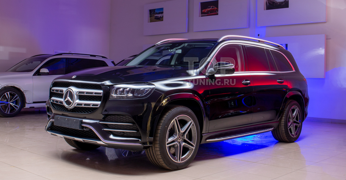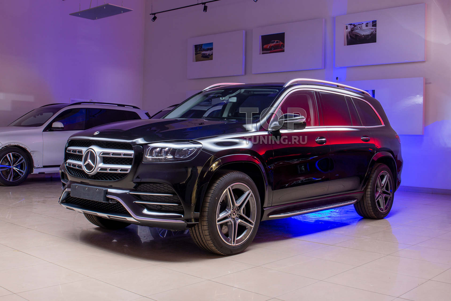 Это новый Mercedes-Benz GLS поступил в центр ТОП Тюнинг сразу из автосалона. После короткого согласования задач было принято решение по полной защите кузова полиуретановой пленкой STEK Platinum, толщиной 200 микрон, тонировке задней полусферы и установки сетки-фильтра в передний бампер и решетку радиатора. Для выполнения работ часть деталей на автомобиле были полностью демонтированы. Кузов прошел комплексную подготовку и команда мастеров приступила к оклейке. Кузовные элементы: капот, бампера, крылья, двери, сегмент крыши, стойки и боковые зеркала полностью окутываются бронепленкой с заворотом внутрь. Это позволяет максимально зафиксировать покрытие на автомобиле и превосходно выглядит.
