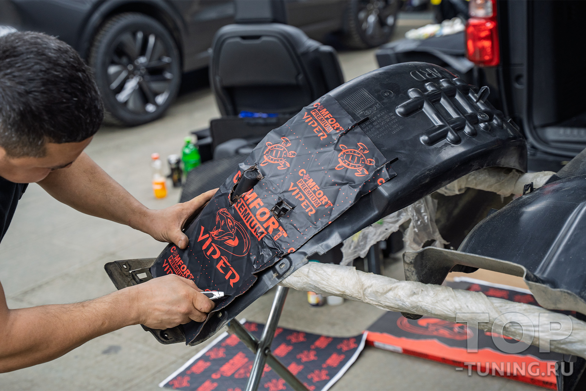 Колесных арок, подкрылков всей задней части. Минивэн — не седан, тут задняя ось буквально "говорит" с салоном. Поэтому арки, крылья, багажник и боковины прошли усиленную обработку. Особенно арки: они получили толстый виброизоляционный "панцирь", который полностью купирует гул от резины и асфальта.