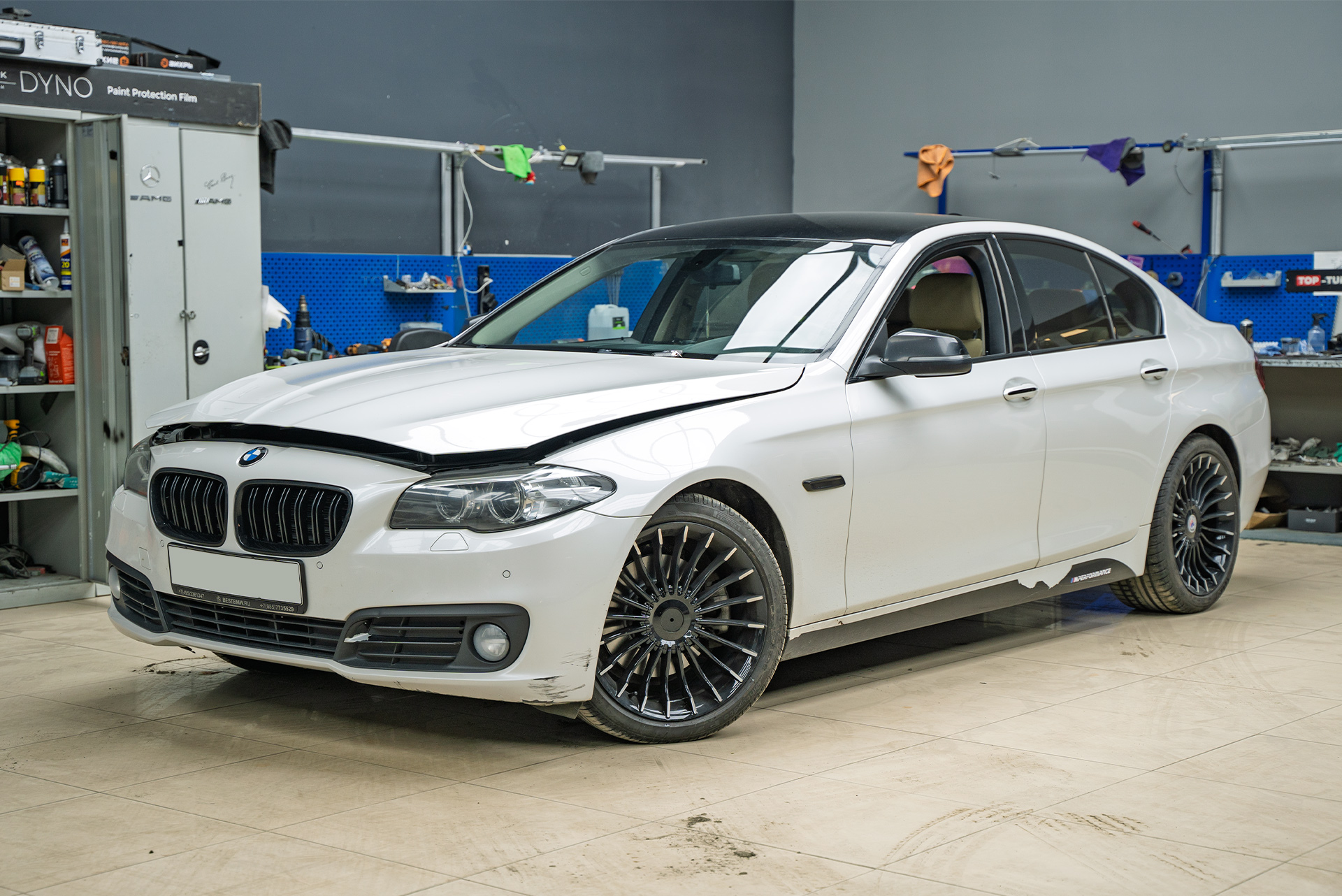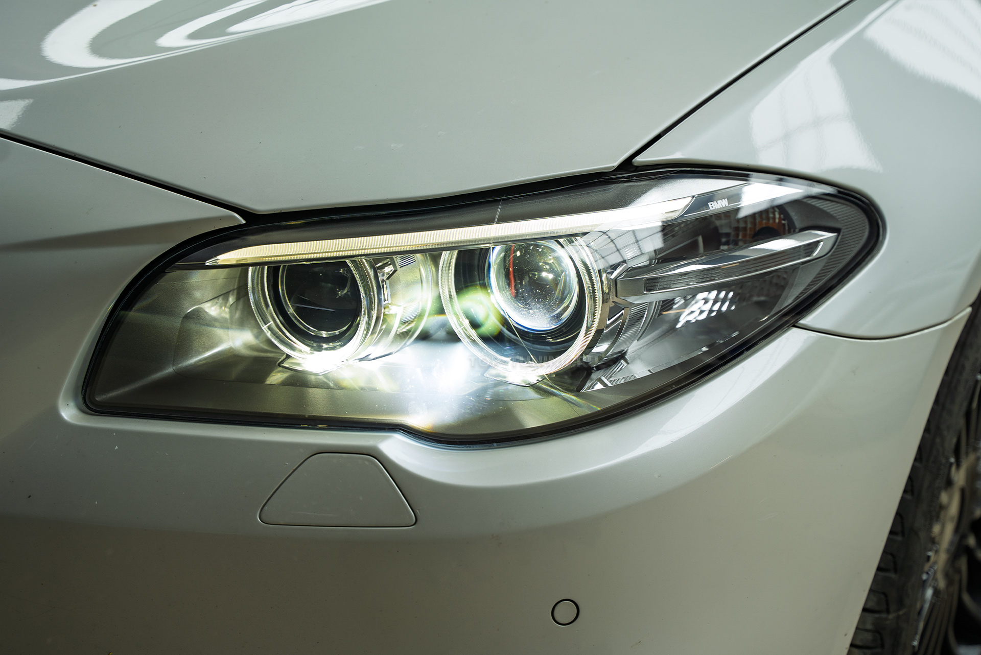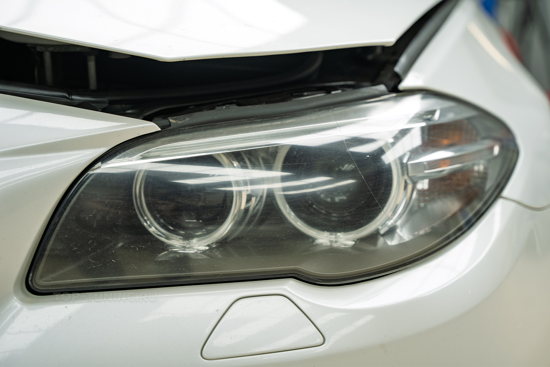Полировка и оклейка фар BMW F10 рестайлинг – удаление царапин на стеклах