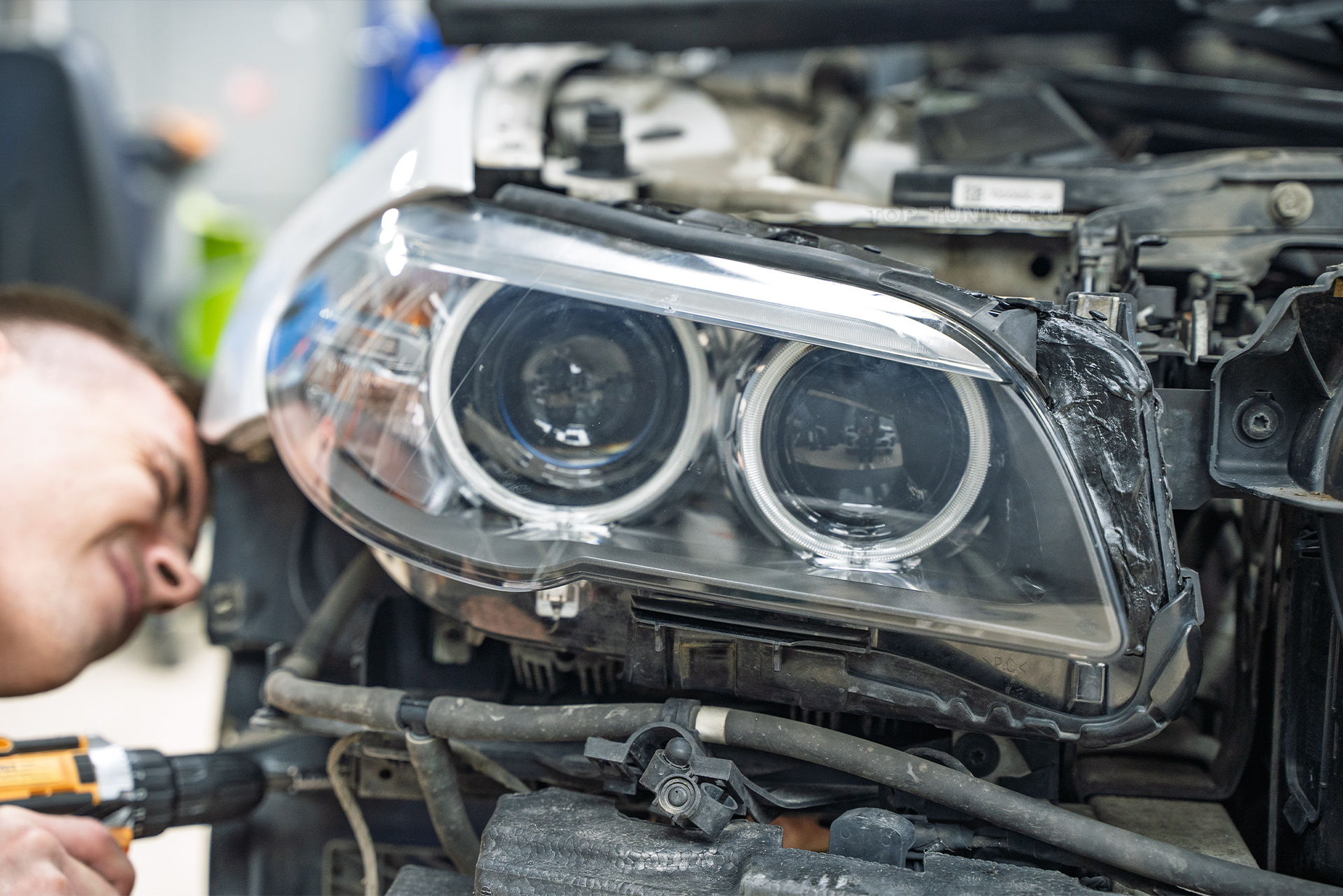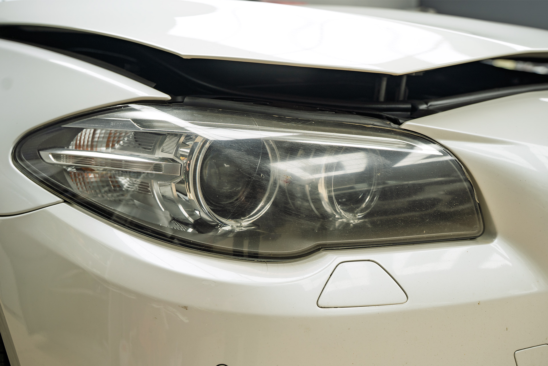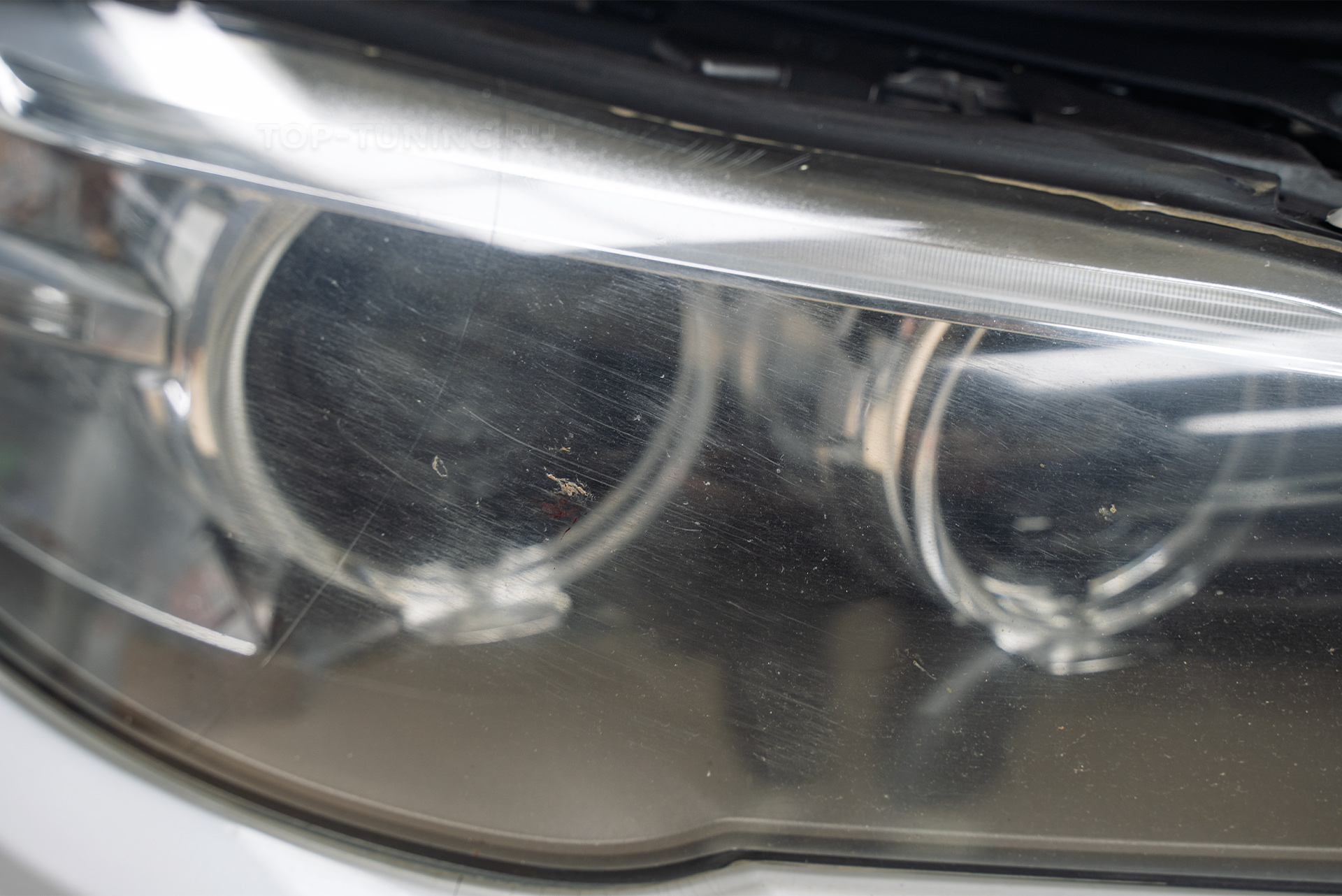 Со временем оригинальные стекла фар БМВ Ф10 заметно потускнели и покрылись сеткой царапи, что влияло не только на общую эстетику, но и на эффективность света.