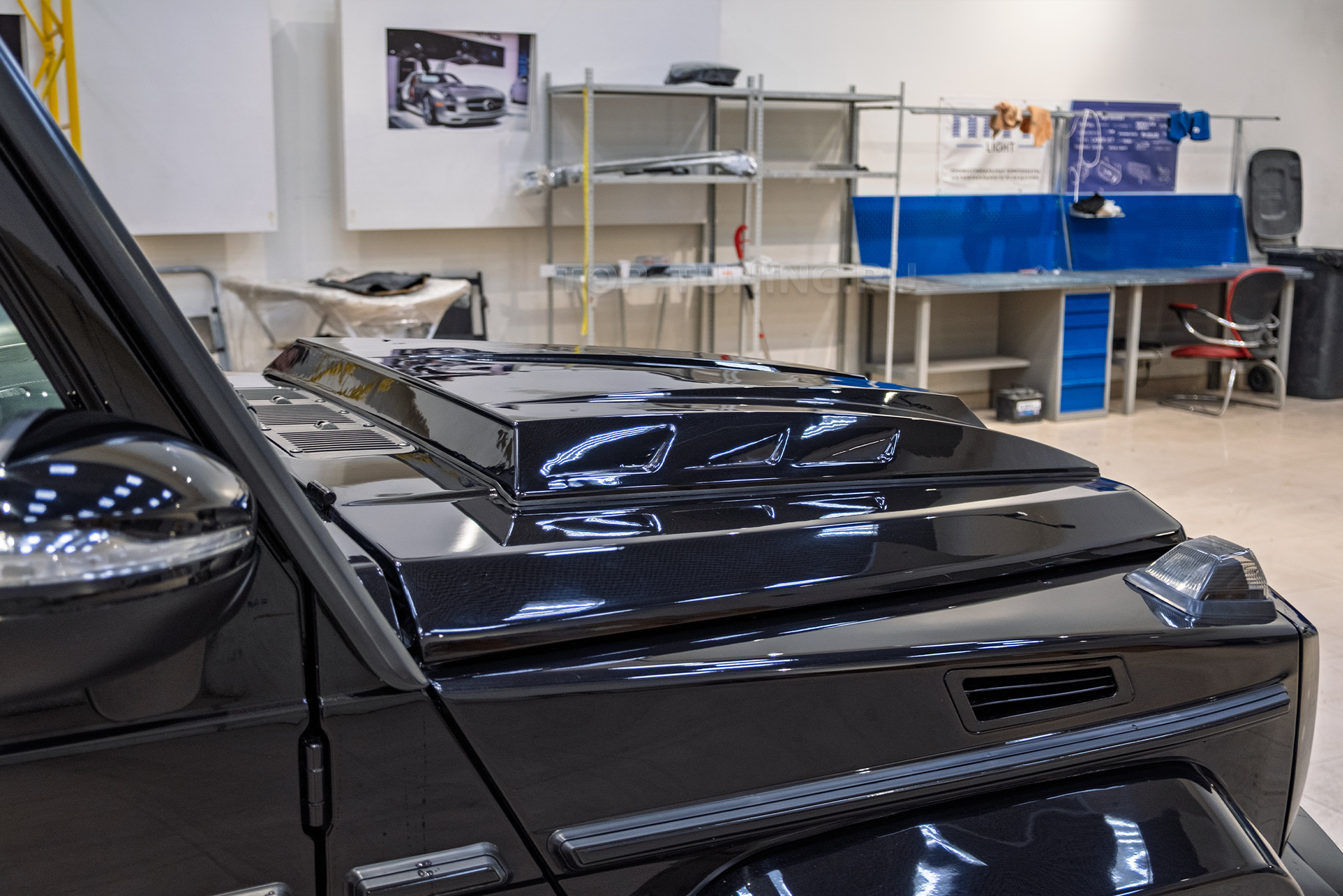 Когда за окном ночь, а под капотом урчит мощный V8, одного «заряженного» двигателя мало — владелец хочет, чтобы и внутри было соответствующее настроение. С этой идеей хозяин Mercedes-Benz G-Class 2018 года в исполнении Brabus обратился в центр Топ Тюнинг Москва.