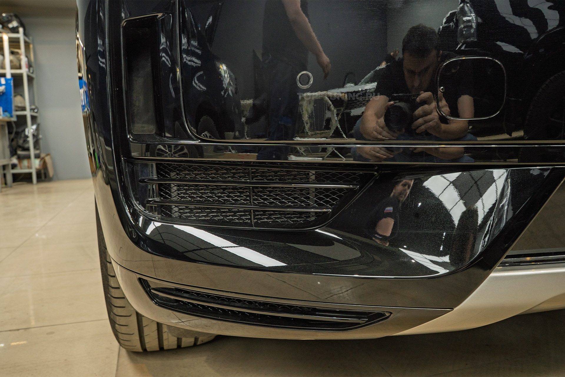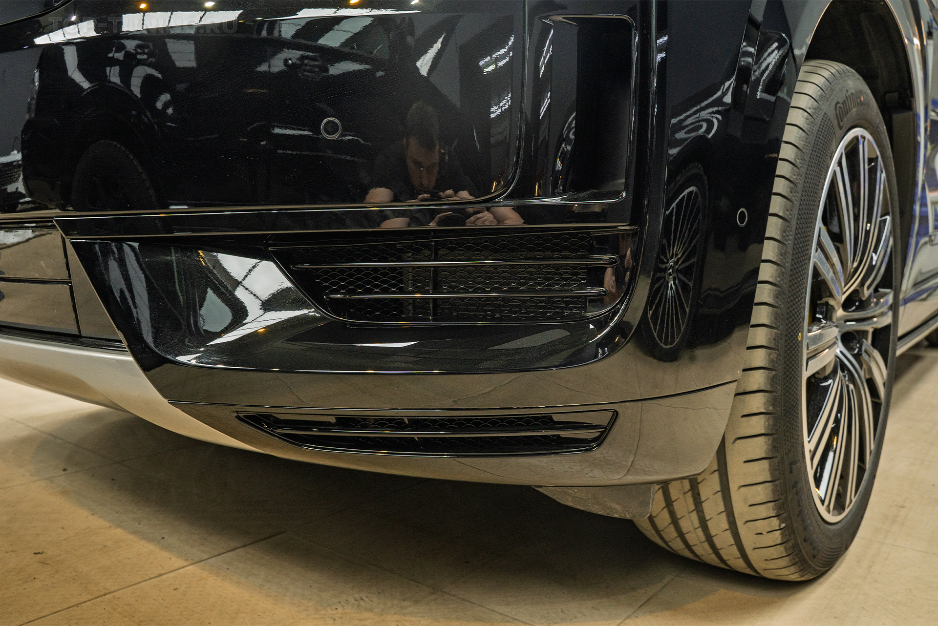 Тюнинг переднего бампера гибридного Denza H9 – монтаж защитной сетки