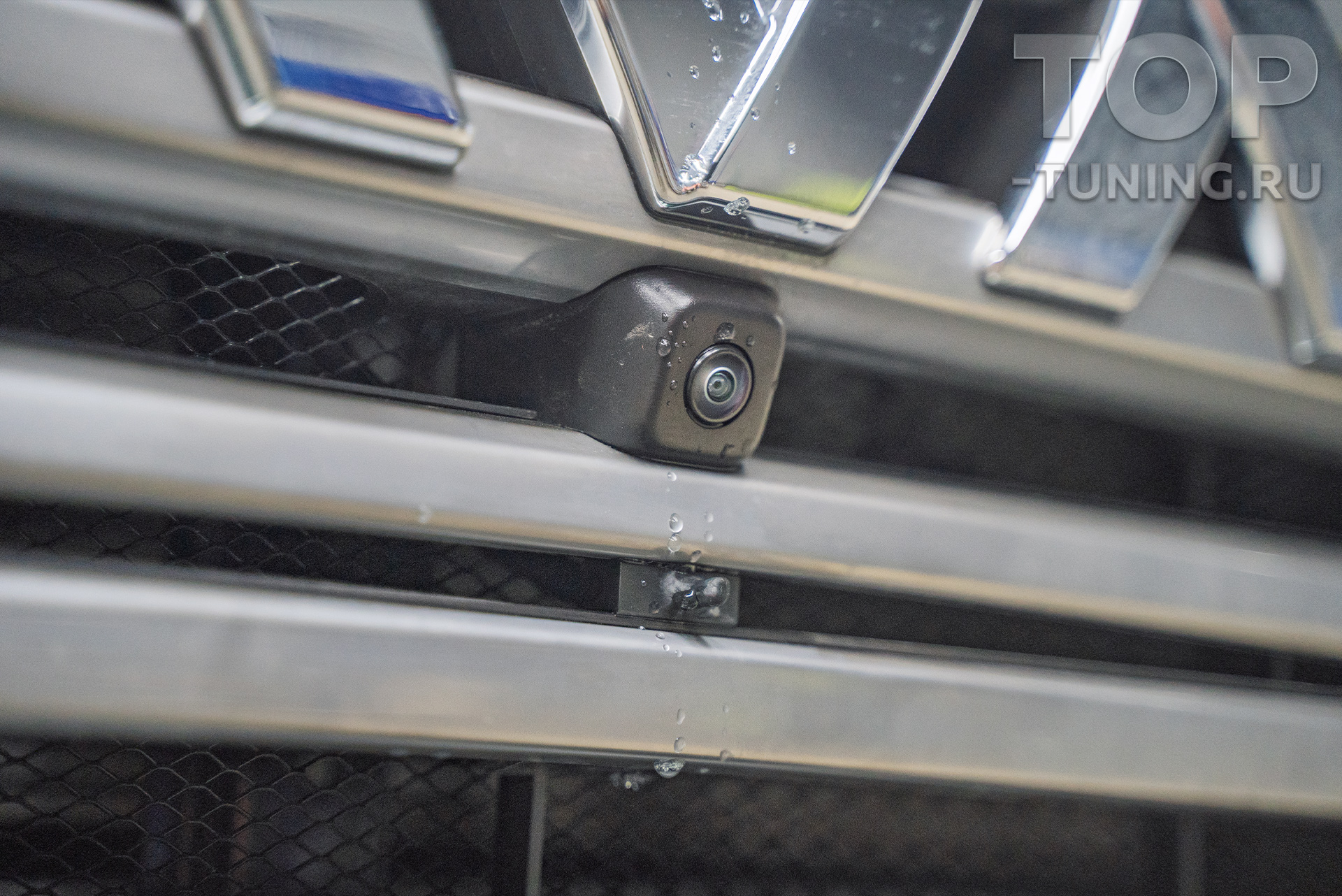 Объектив фронтальной камеры, критически важный для нормального функционирования системы кругового обзора 360°, также прошел через дополнительное оснащение. Не смотря на премиальный статус флагмана Haval, автомобиль не был оснащен штатным обывателем камеры, что зачастую приводило к проблемам с видимостью во время парковки.