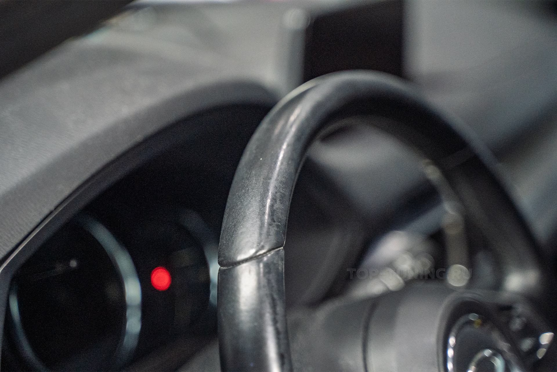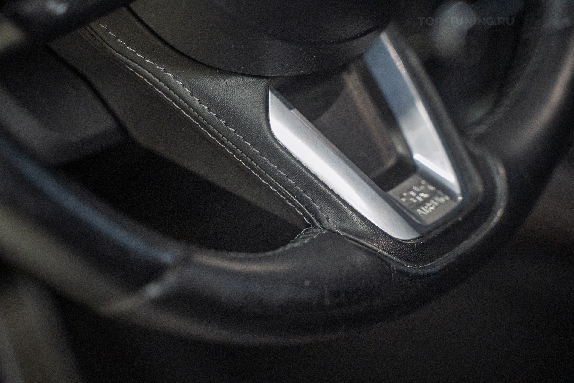 Монтаж был выполнен специалистами Топ Тюнинг с сохранением штатных крепёжных точек и разъёмов. Корректность интеграции — ключ к тому, чтобы обновлённый руль ощущался частью оригинальной концепции Mazda: никаких «колхозных» решений, всё выглядит и работает как с завода, только удобнее и приятнее на ощупь.
