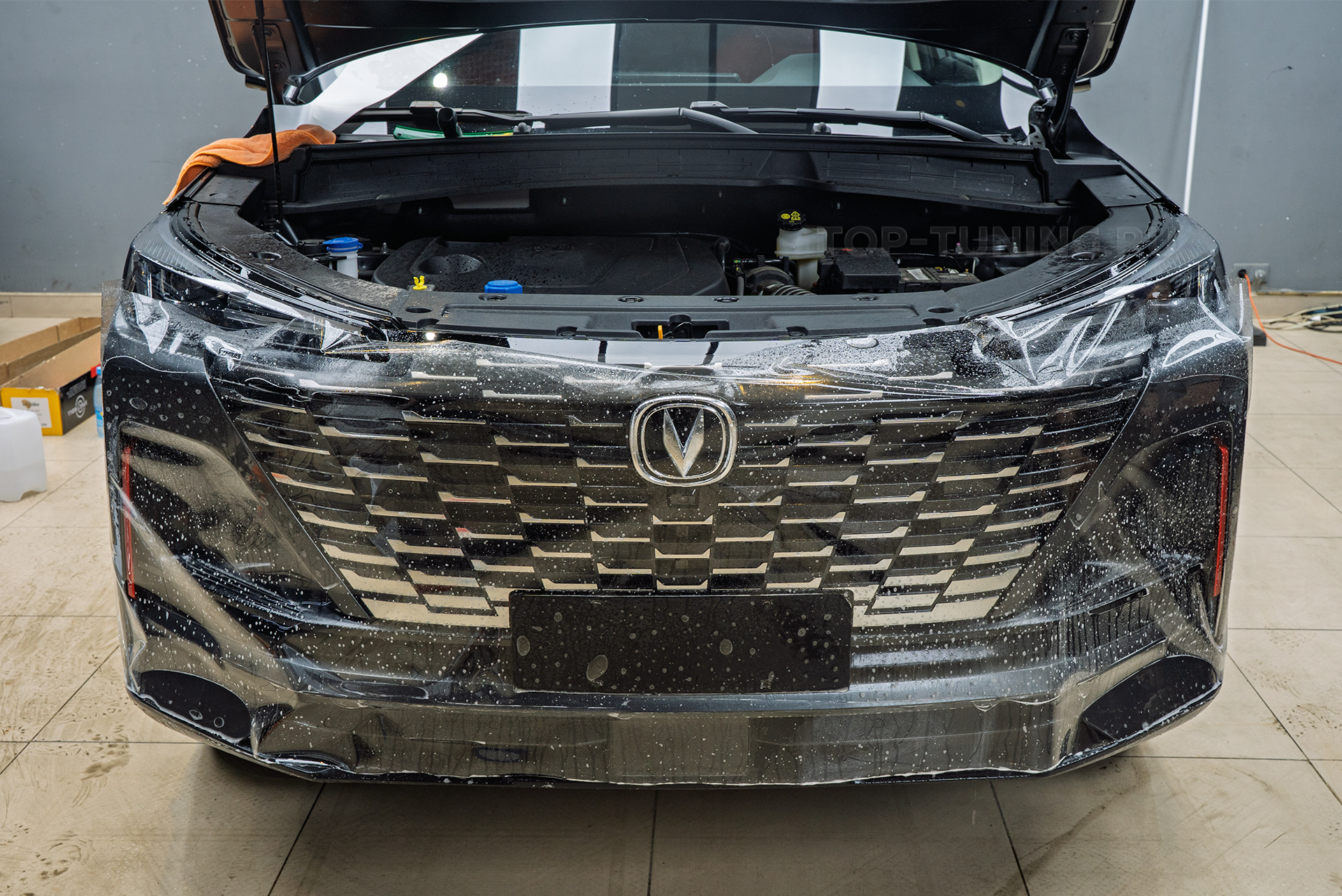 Оклейка передней части Changan CS55 Plus I рест защитной пленкой