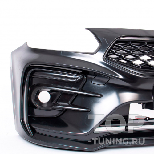 Монтаж взамен штатного переднего бампера на заводские места. Заводские противотуманные фонари и дневные ходовые огни фиксируются на встроенные, внутренние крепления бампера. Для бампера без ходовых огней предусмотрены специальные вкладыши для корректной установки. Бампер устанавливается без предварительных примерок или подгонок. Рекомендуется выполнять монтаж бампера в специализированных центрах по установке аксессуаров и дополнительного оборудования. Фирменный монтаж и установка "под ключ" в Топ Тюнинг Москва - по предварительно записи.