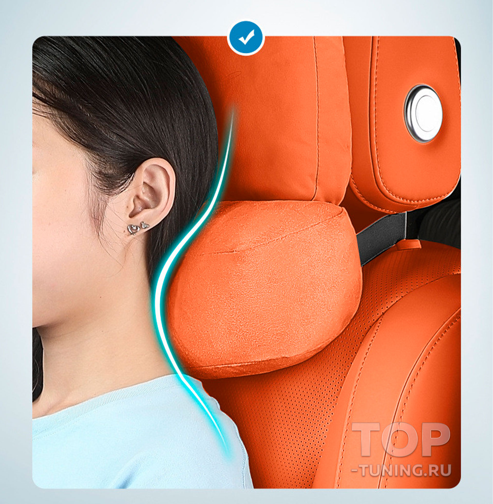 Благодаря объёмной структуре подушка надёжно фиксирует голову и предотвращает перегибы шейного отдела, особенно актуальные при длительной езде или в пробках.