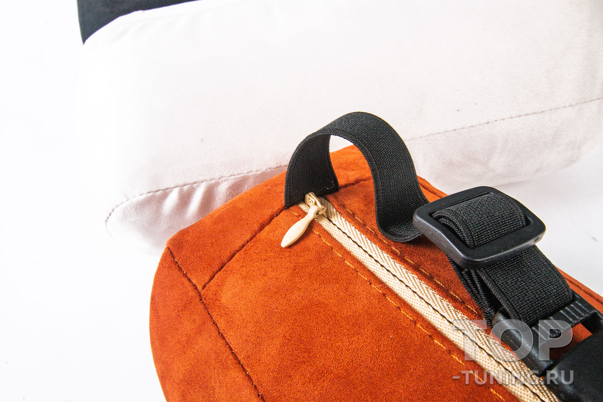 Крепится с помощью регулируемой эластичной ленты — установка занимает всего пару секунд, не требует инструментов и не повреждает обивку. Подходит для большинства стандартных подголовников.
