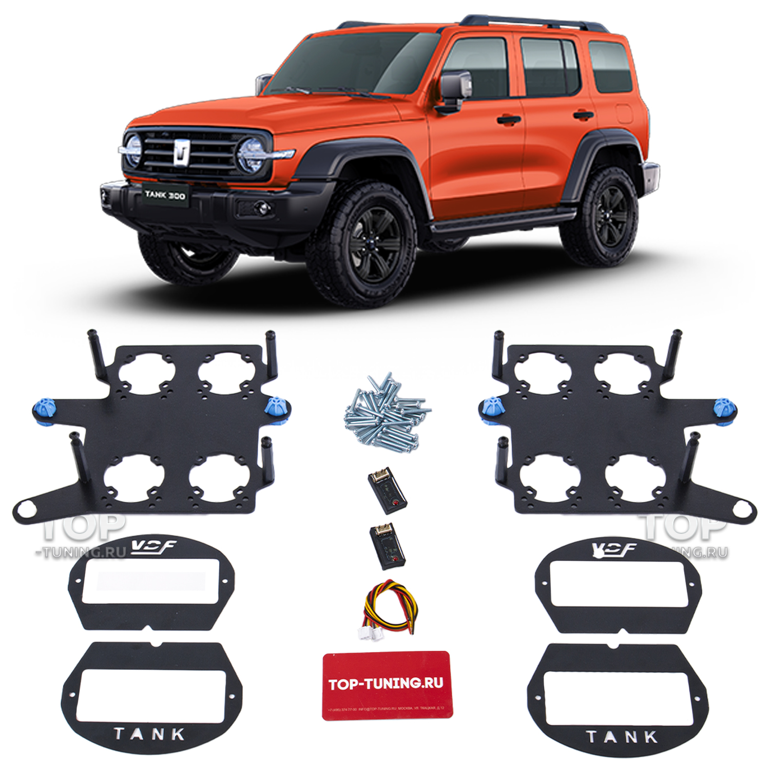 Комплект переходных рамок с обманками для замены заводских светодиодных линз в фарах Танк 300 (2021-2024)