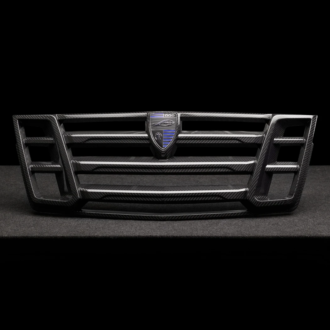 Спортивная решетка радиатора LARTE Design Esthete для тюнинга Cadillac Escalade 5-го поколения. Изготавливается на выбор из композитного пластика или из натурального карбона (опция). Решетка имеет горизонтальные ламели с имитацией массивных воздухозаборников по краям. В центре решетки расположена площадка под эмблему LARTE Design.