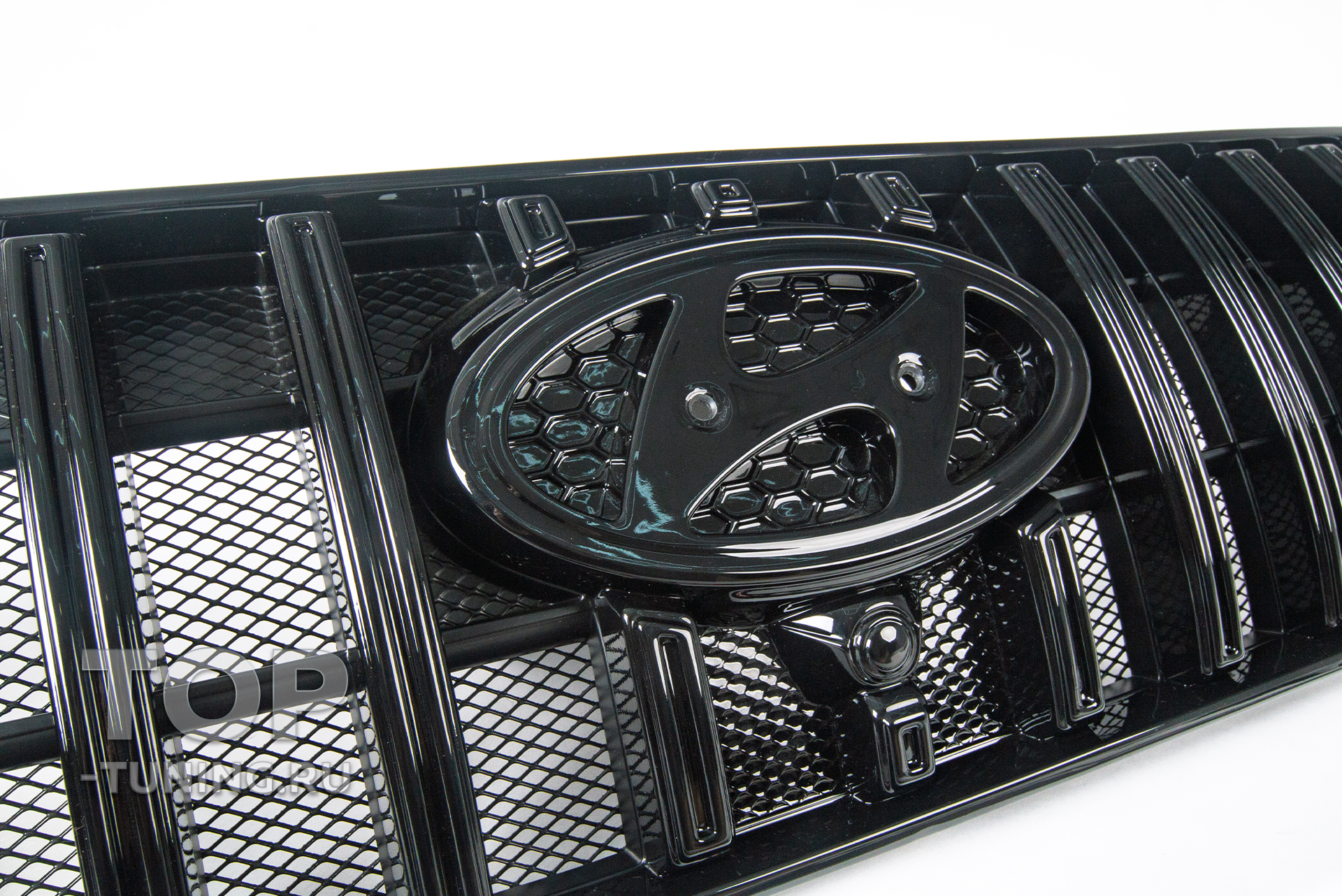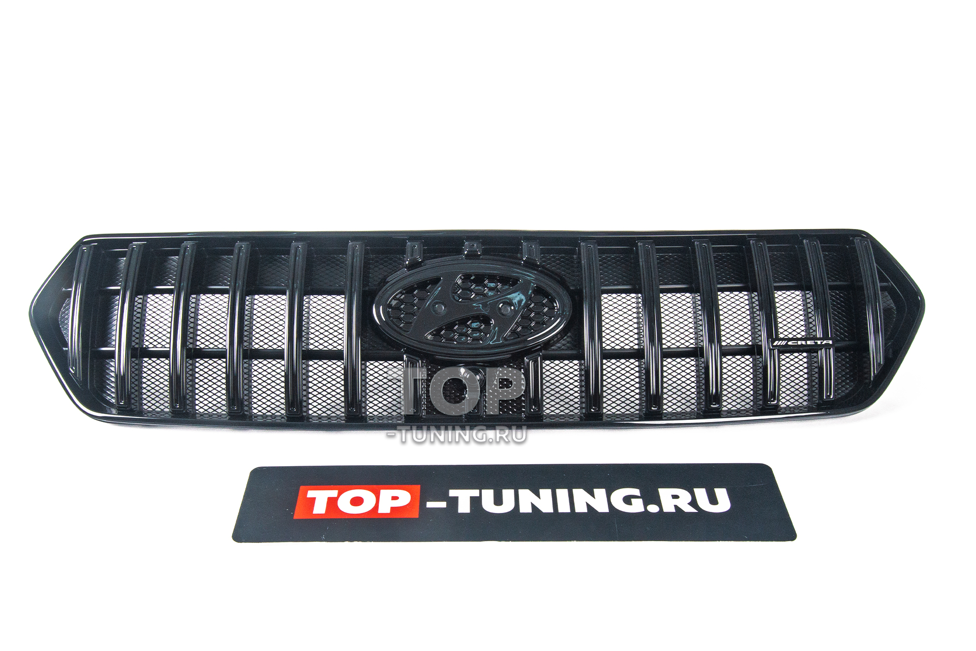 В центре решетки расположена площадка под штатную эмблему Hyundai, которая идет в комплекте
