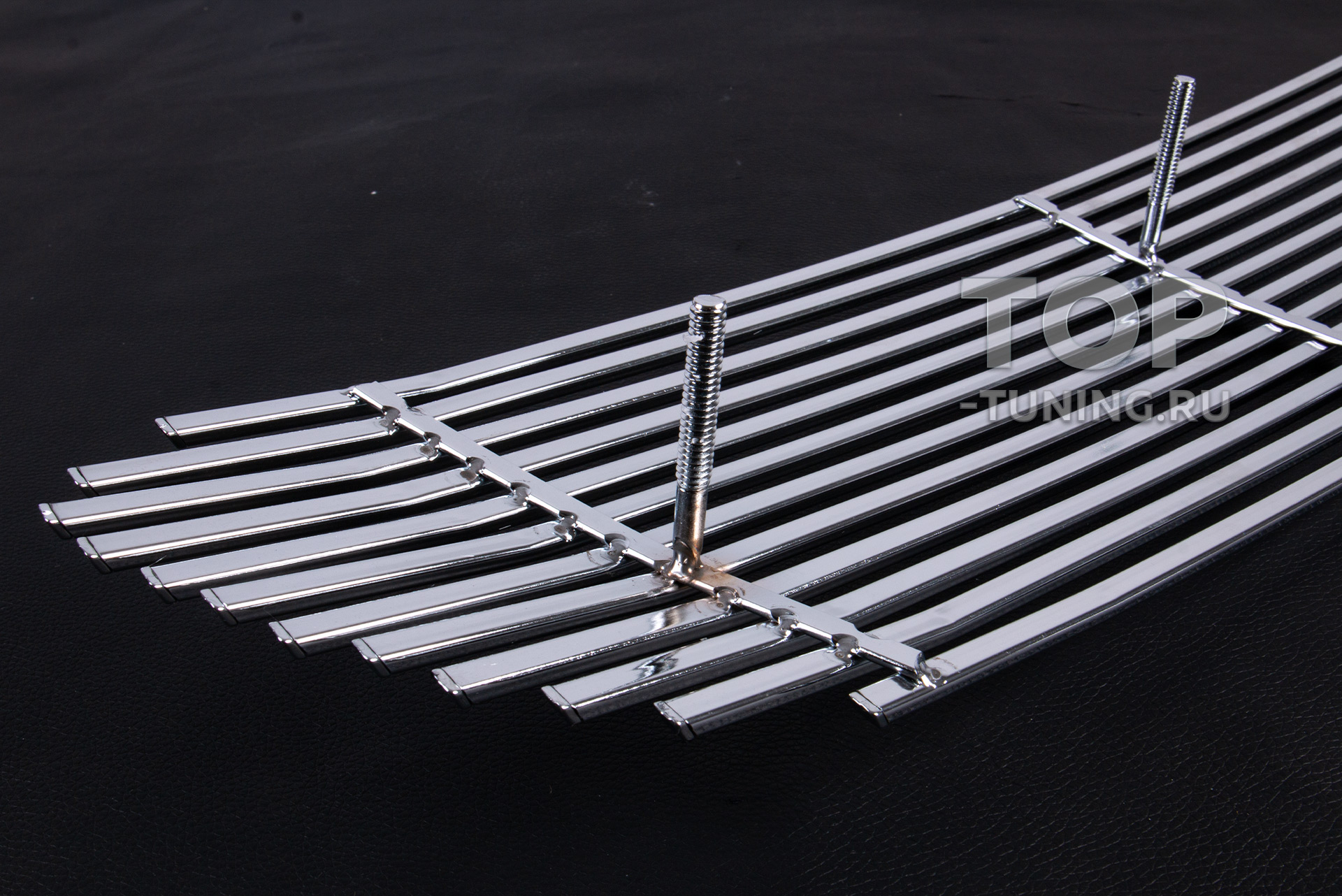 Решетка выполнено из нержавеющей стали с зеркальной полировкой, благодаря чему деталь не только эффектно подчеркивает стиль автомобиля, но и защищает радиатор от камней, грязи и дорожного мусора.