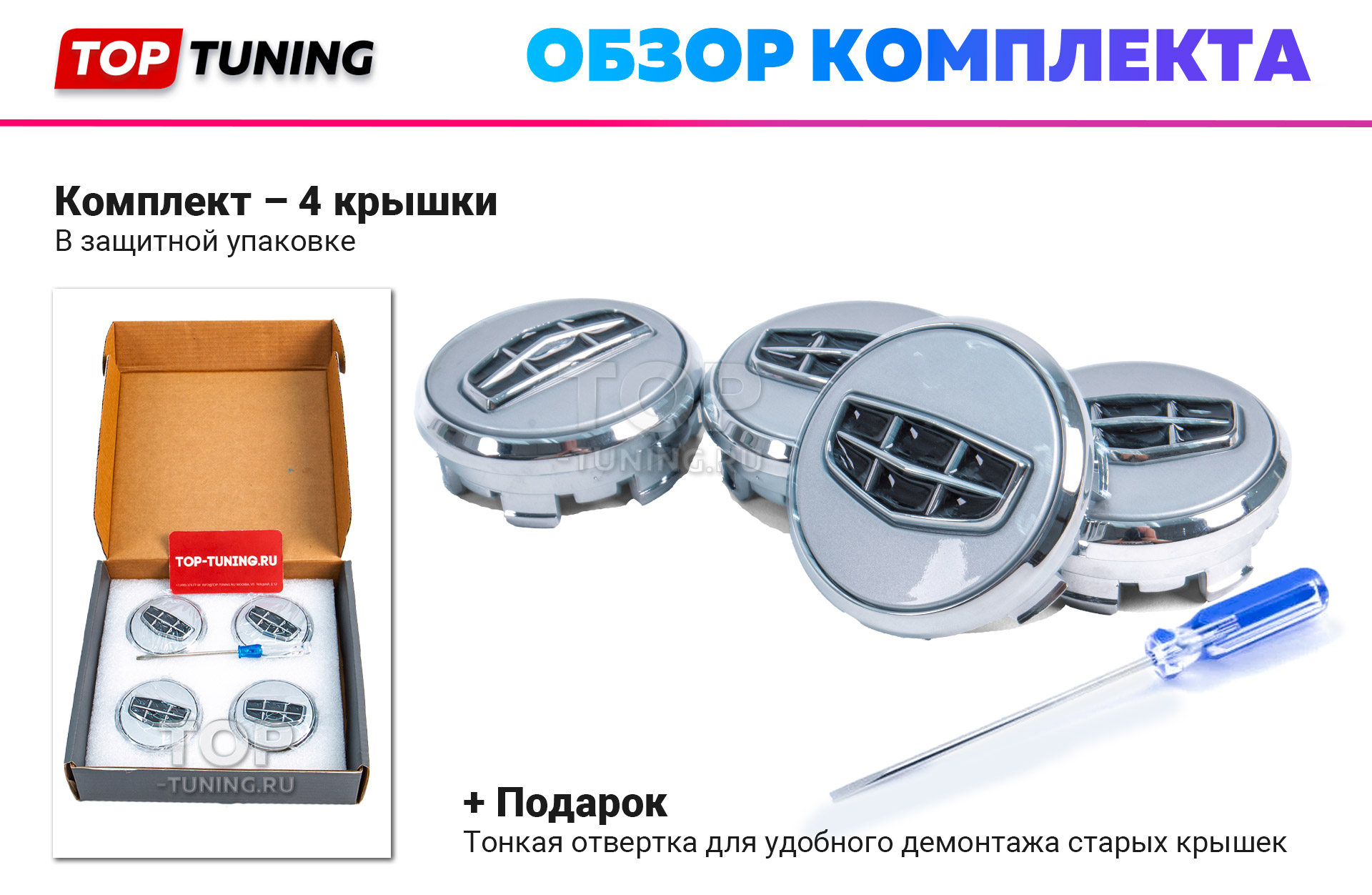 Набор из четырех серебристых колпачков с хромированным ободом и эмблемой Джили. Предназначены для монтажа в оригинальные диски Geely с внешним диаметром центрального отверстия (ЦО) 62 мм и внутренним 58 мм.