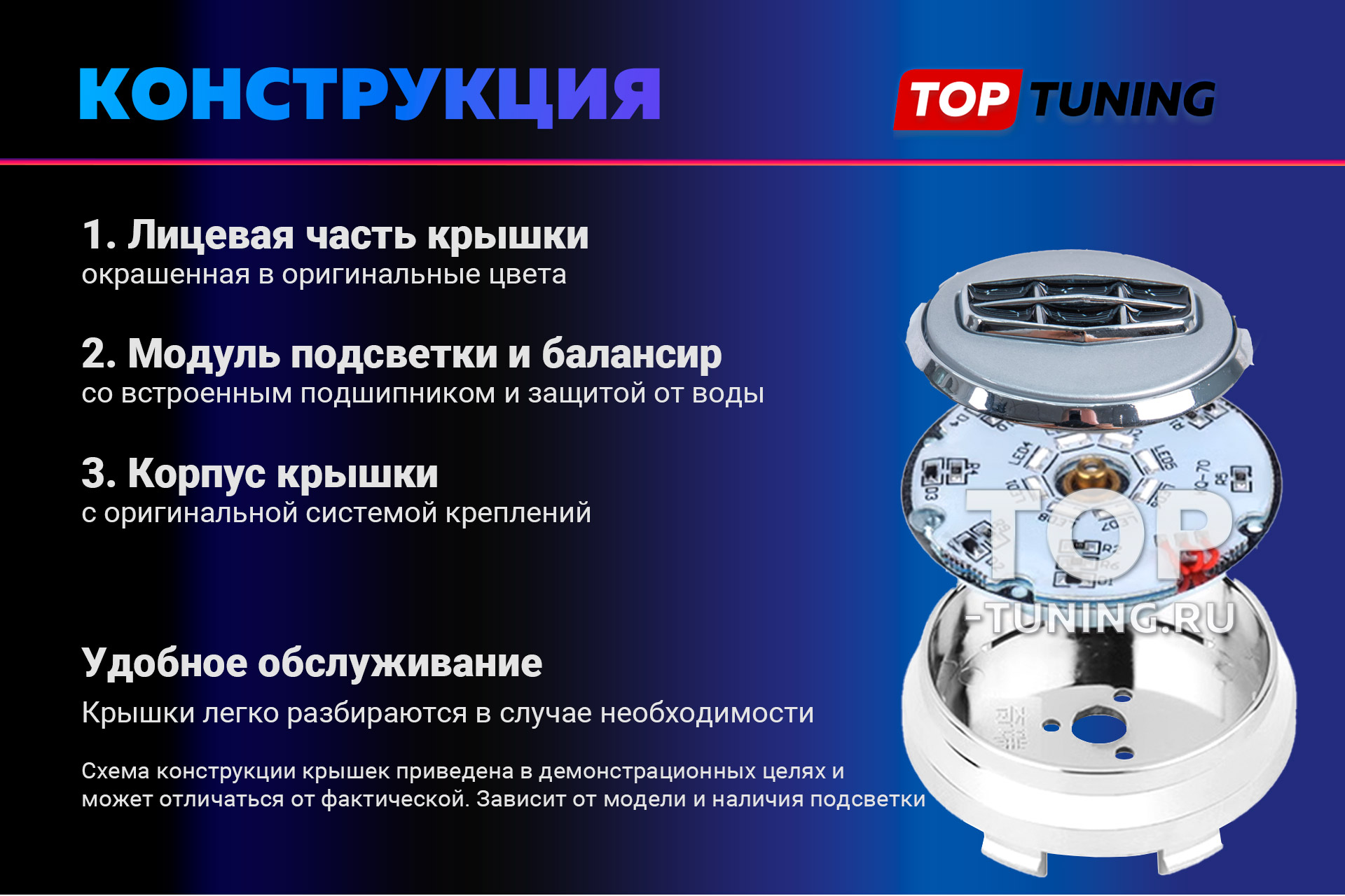 Чем выше скорость, тем ярче свечение эмблемы. Подсветка создает фоновое освещение центральной части колесного диска, что выглядит особенно привлекательно на отражающих поверхностях. Как только автомобиль остановился или скорость снизилась, подсветка выключится сама.