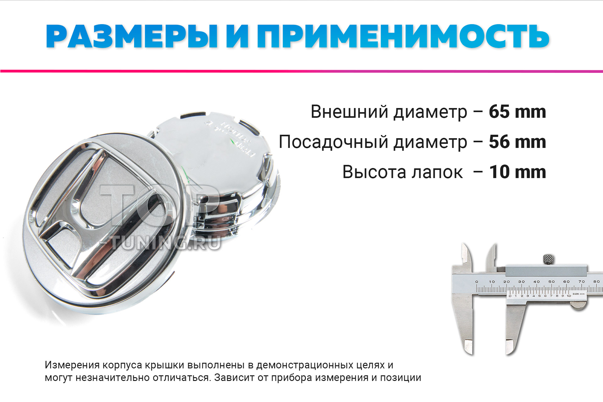 Колпачки подходят для оригинальных литых дисков Honda с посадочным диаметром 56 мм. Отличный выбор для освежения внешнего вида колёс и акцентирования фирменного стиля.