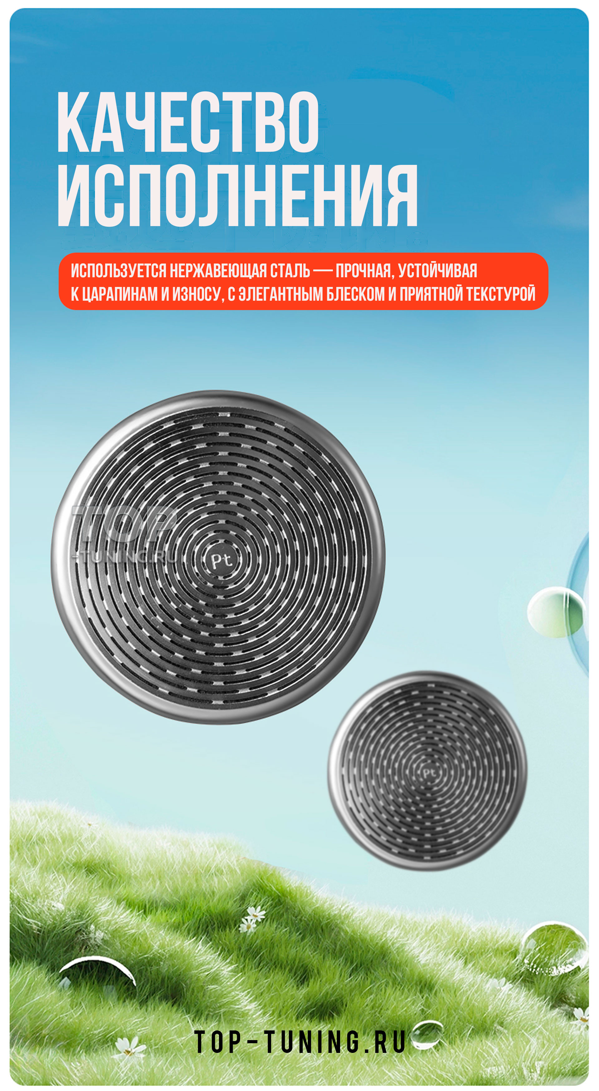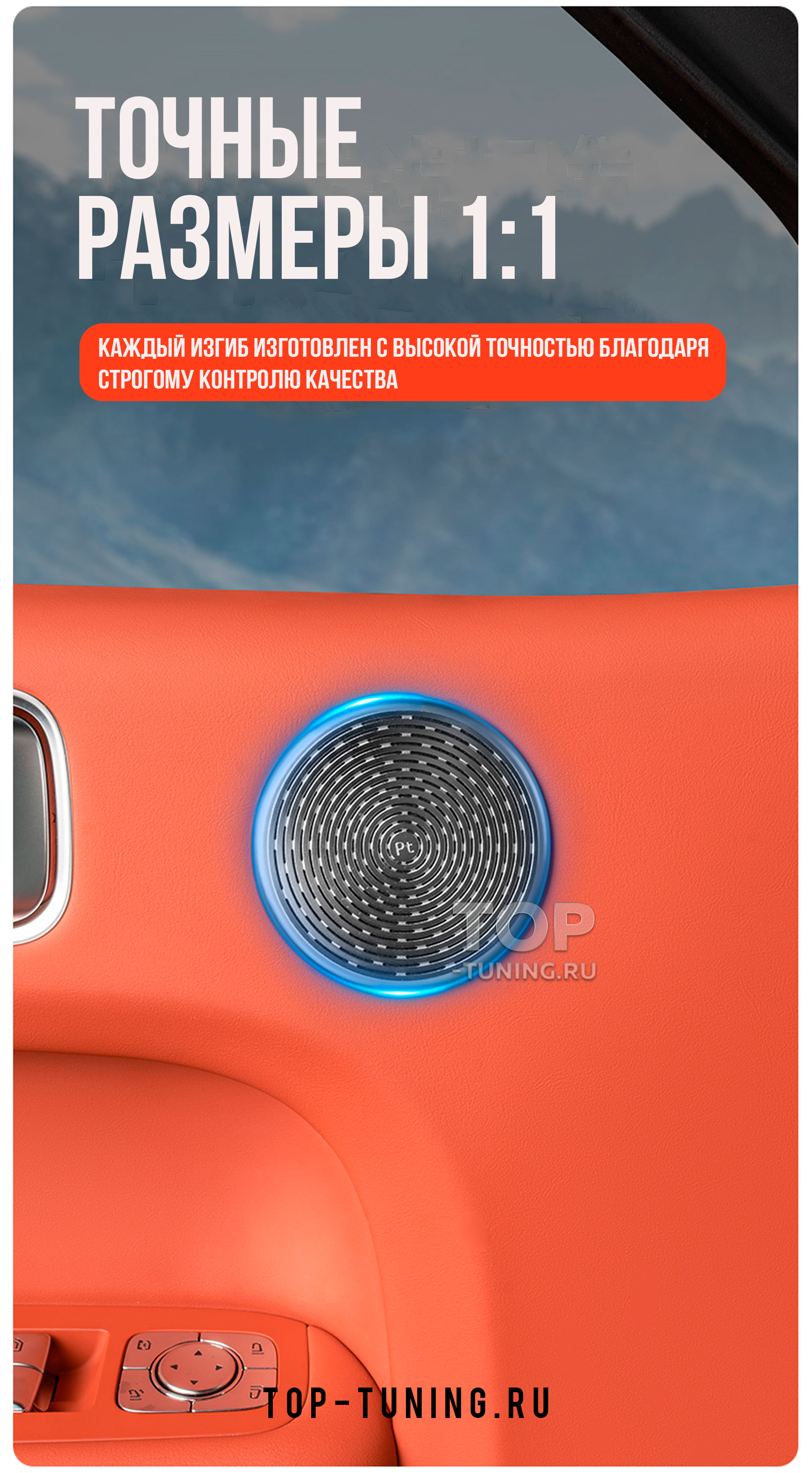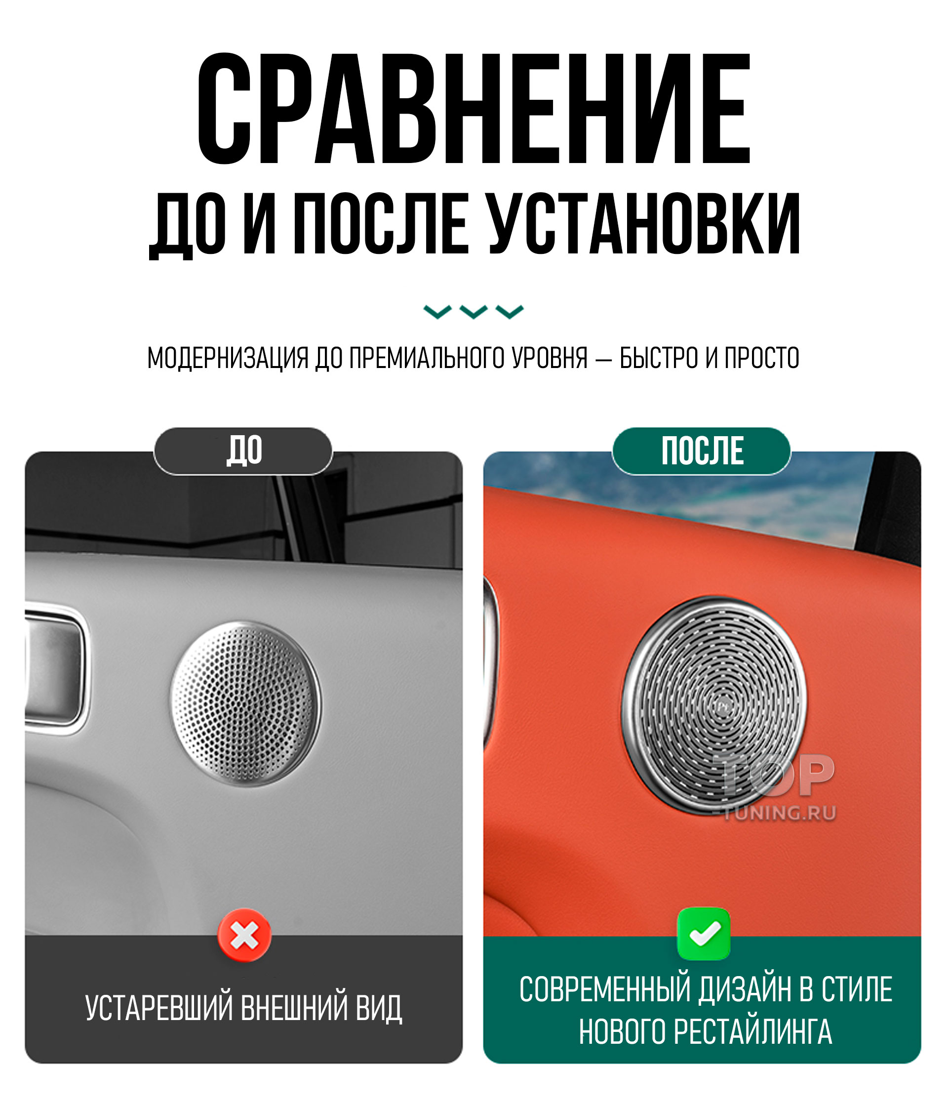 Изготовленные из качественной нержавеющей стали, накладки обеспечивают надёжную защиту динамиков от пыли, грязи и механических повреждений. Материал отличается устойчивостью к коррозии, царапинам и выгоранию, что гарантирует сохранение первозданного вида на долгие годы.