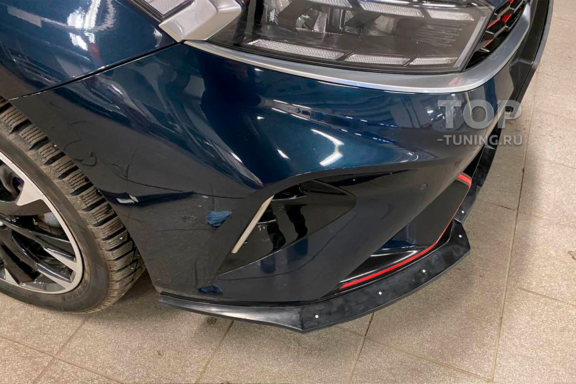 Монтаж осуществляется с использованием профессионального двустороннего скотча 3M в сочетании со стекольным герметиком. При необходимости допускается дополнительная механическая фиксация к нижней, скрытой зоне переднего бампера. Рекомендуется установка в специализированном техцентре Топ Тюнинг по предварительной записи.