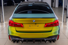 Разработанный специалистами SCL GLOBAL Concept, аксессуар гармонично дополняет фирменные линии кузова, делая M5 более спортивным и выразительным. Спойлер визуально удлиняет крышу, подчеркивая стремительный силуэт автомобиля.