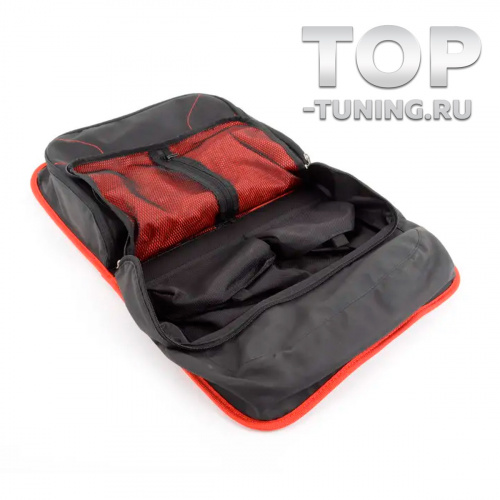 Оригинальная сумка для крепления на тыльной стороне спинки сиденья. Большое количество карманов позволяют разместить различные предметы необходимые для поездки. При необходимости ее можно складывать и переносить с собой. Представлена в двух вариантах: