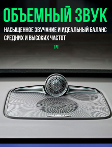Элегантный дизайн добавляет автомобилю премиальность, подчеркивая его современный стиль. Помимо визуальной привлекательности, система создает объемный звук с точной проработкой высоких частот, гарантируя исключительное акустическое удовольствие.