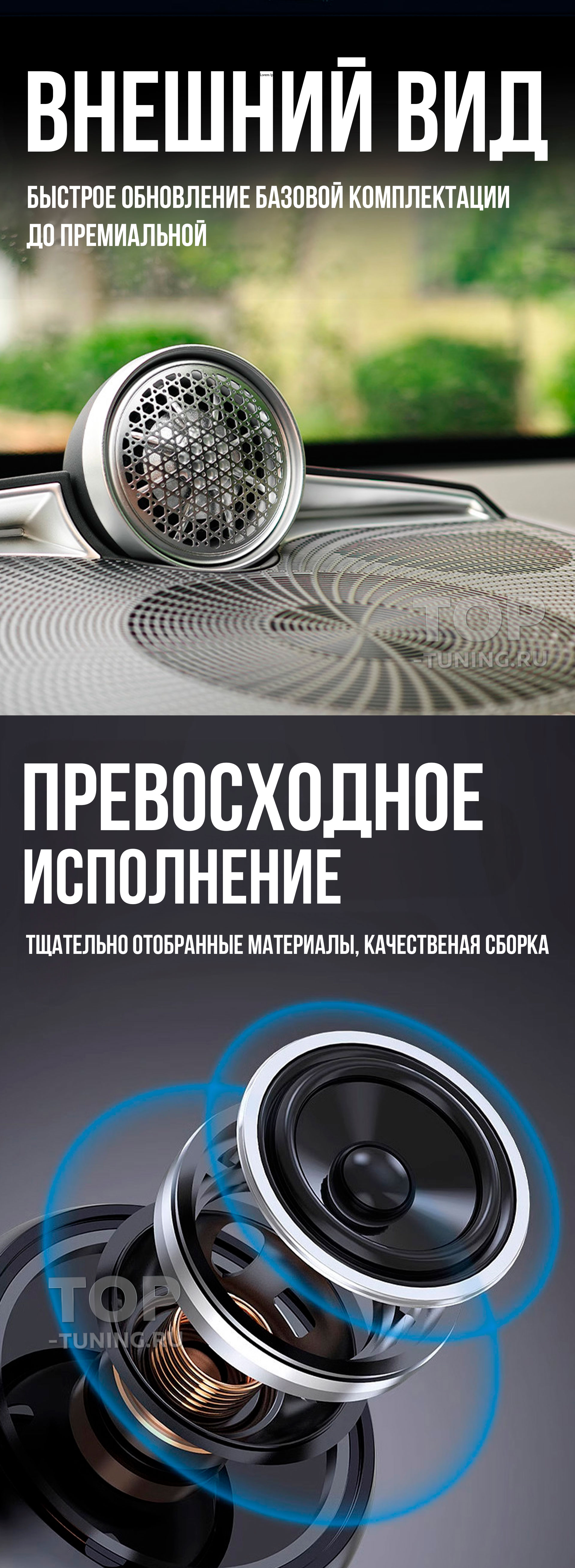 Элегантный дизайн добавляет автомобилю премиальность, подчеркивая его современный стиль. Помимо визуальной привлекательности, система создает объемный звук с точной проработкой высоких частот, гарантируя исключительное акустическое удовольствие.
