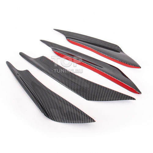 Элероны GT для модернизации внешнего вида переднего бампера. Универсальные, могут быть установлены практически на любой бампер. Материал - АБС пластик. Цвет на выбор: 1) Черный; 2) Карбон стиль (аквапринт). Простой монтаж на двусторонний скотч (нанесен с внутренней деталей). Для более надежной фиксации рекомендуется обработать поверхность бампера специальным праймером для усиления адгезии двустороннего скотча (приобретается отдельно).