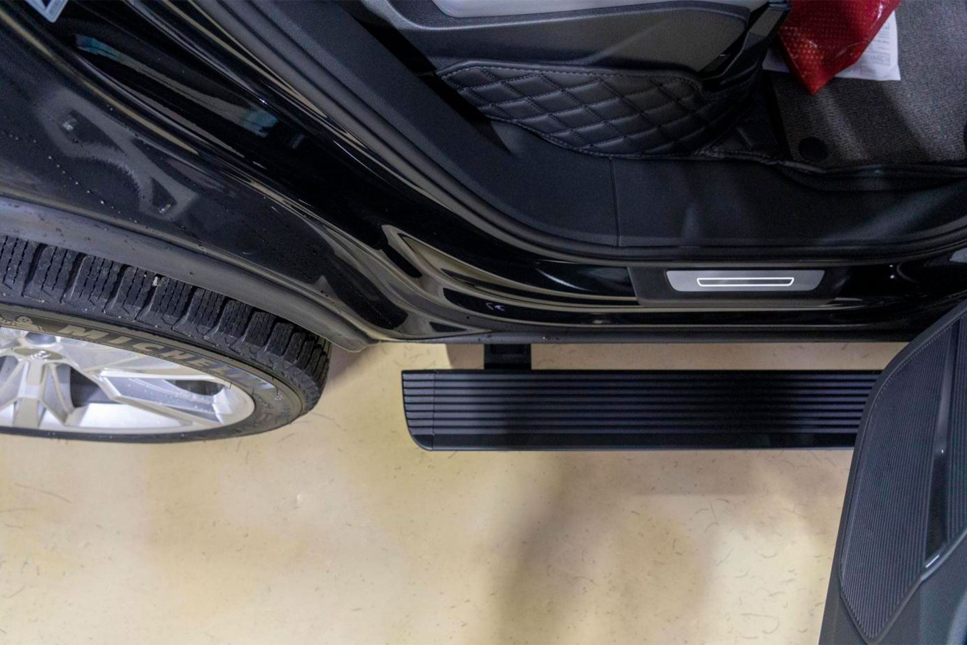 Электрический привод синхронизирован с системой открытия дверей автомобиля. При открытии двери ступень плавно выдвигается, обеспечивая дополнительную опору для водителя и пассажиров. После закрытия двери подножка возвращается под кузов.