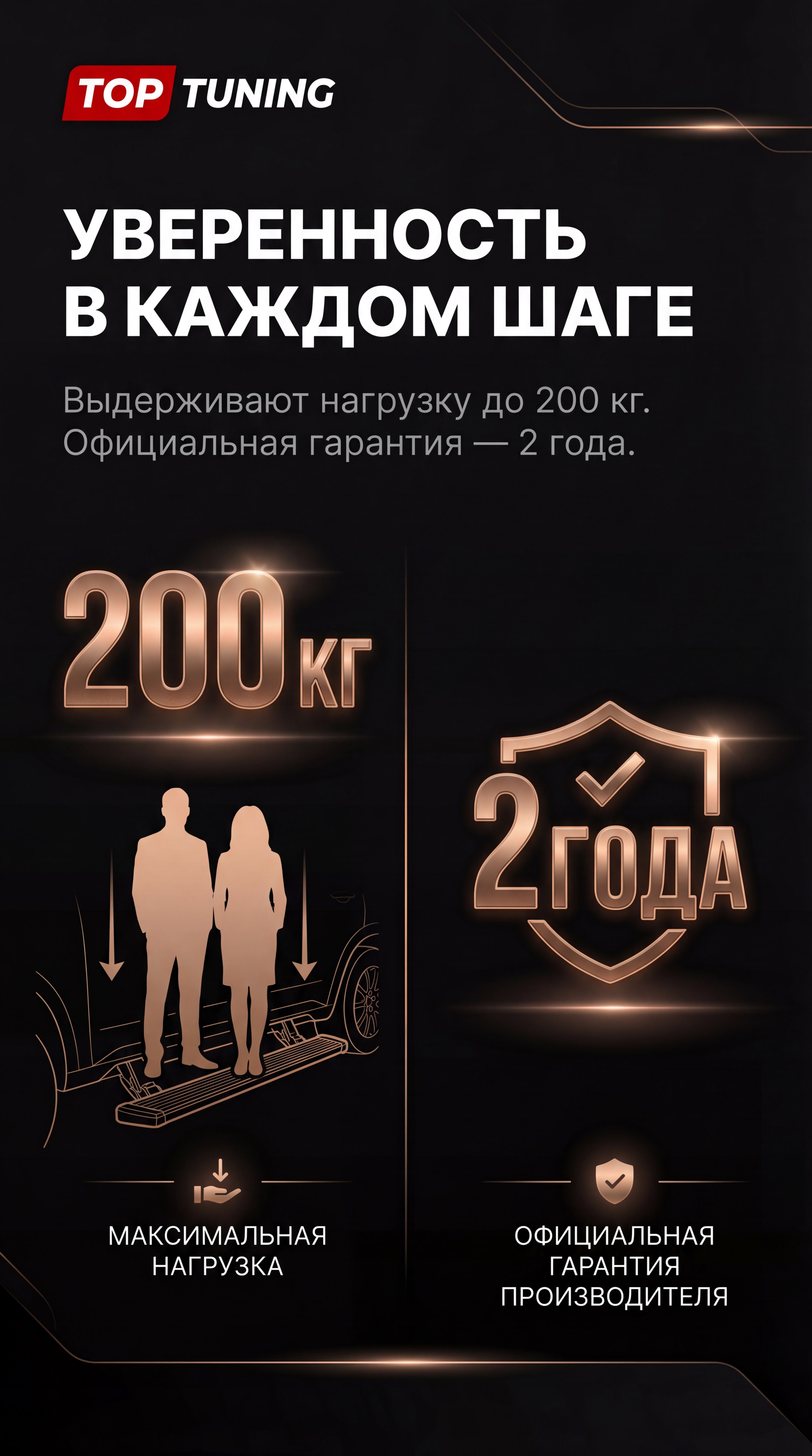 В отличие от бюджетных аналогов, пороги RRS производятся в Южной Корее. Это гарантирует высокое качество сборки электромоторов и долговечность материалов.