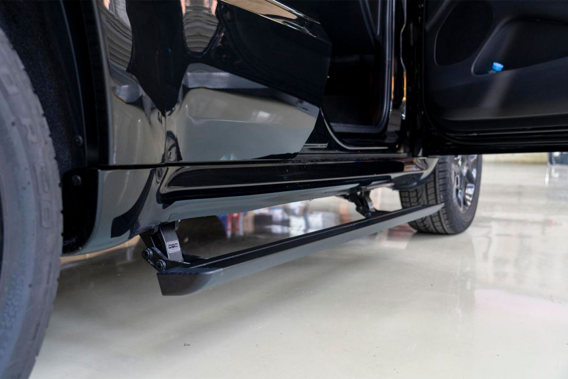 В условиях высокого клиренса подножки делают посадку и высадку более удобной как для водителя, так и для задних пассажиров. В сложенном положении ступени полностью скрыты под кузовом и незначительно уменьшают дорожный просвет.
