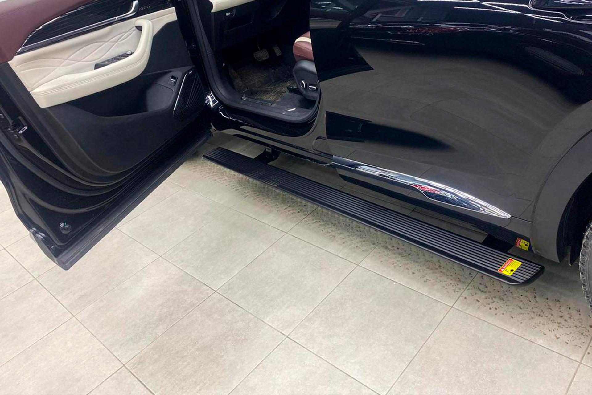 Высокий клиренс Джили Монжаро делает посадку менее удобной для детей и пассажиров старшего возраста. Установка автоматических подножек упрощает доступ в салон и повышает общий уровень комфорта.