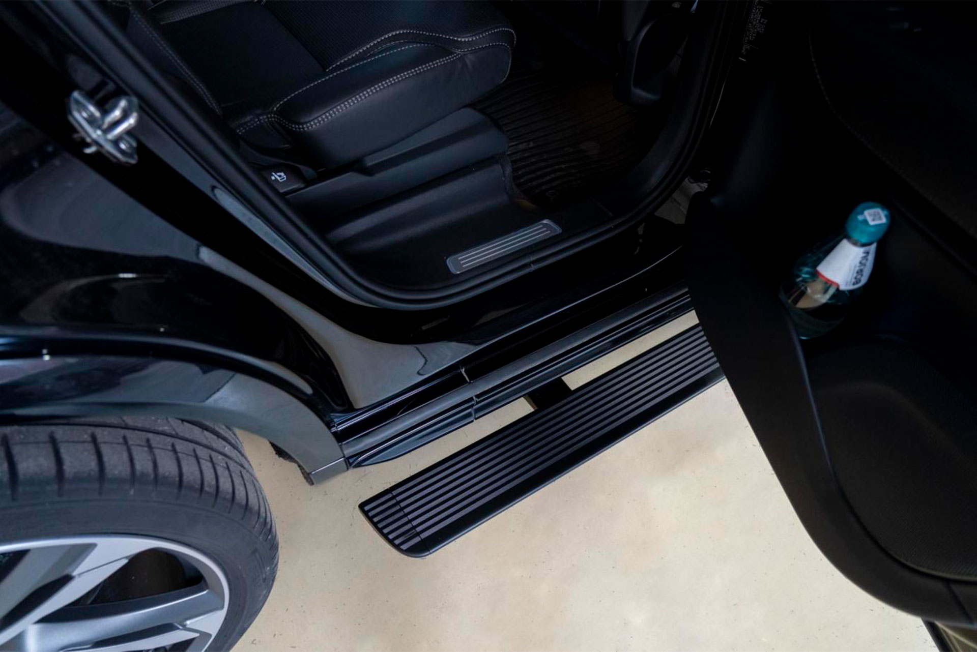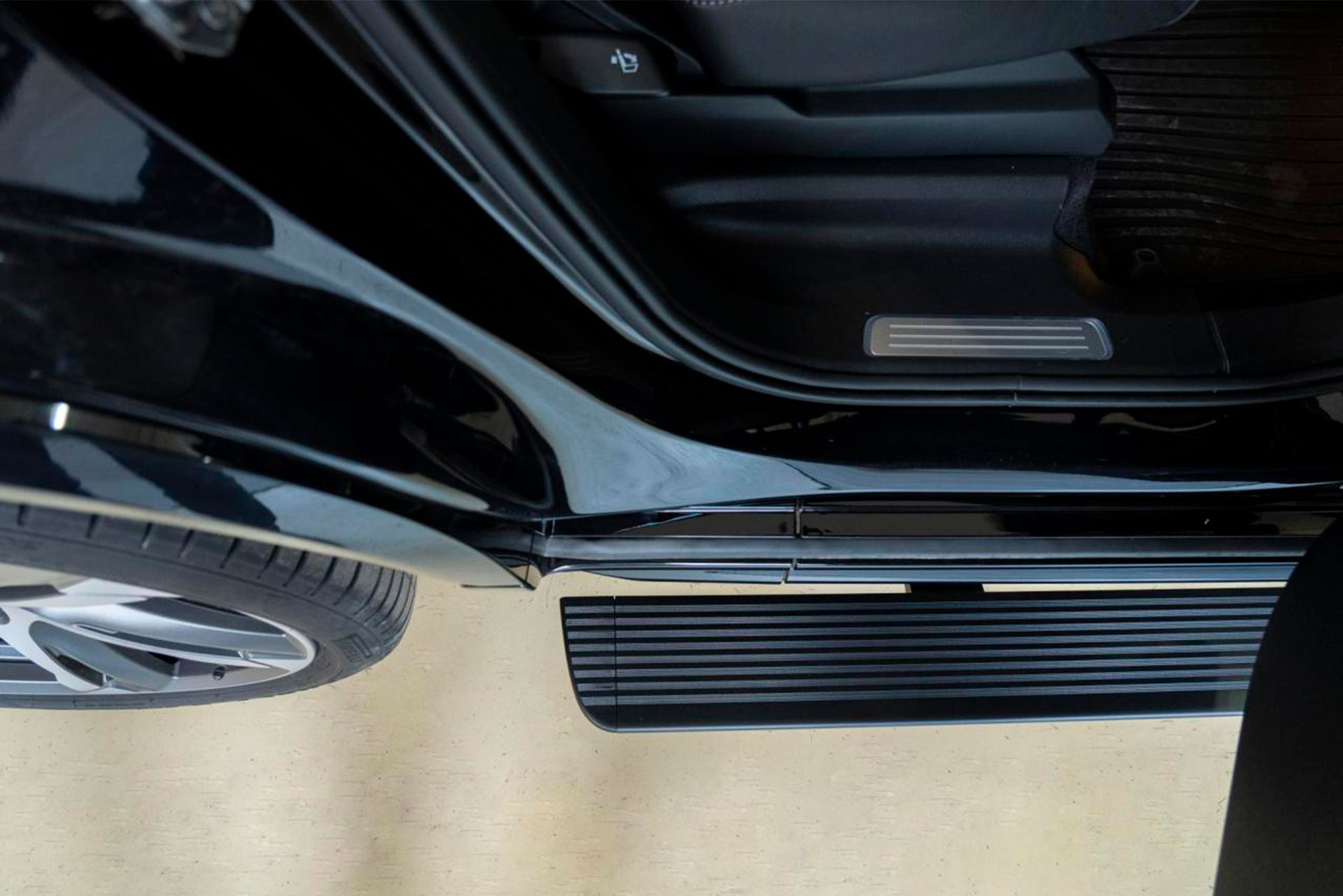 Высокий дорожный просвет кроссовера обеспечивает проходимость, но усложняет посадку. Электроподножки делают вход и выход из салона удобнее для водителя и пассажиров, включая задний ряд. В сложенном состоянии ступени полностью скрыты под кузовом и незначительно уменьшают клиренс.