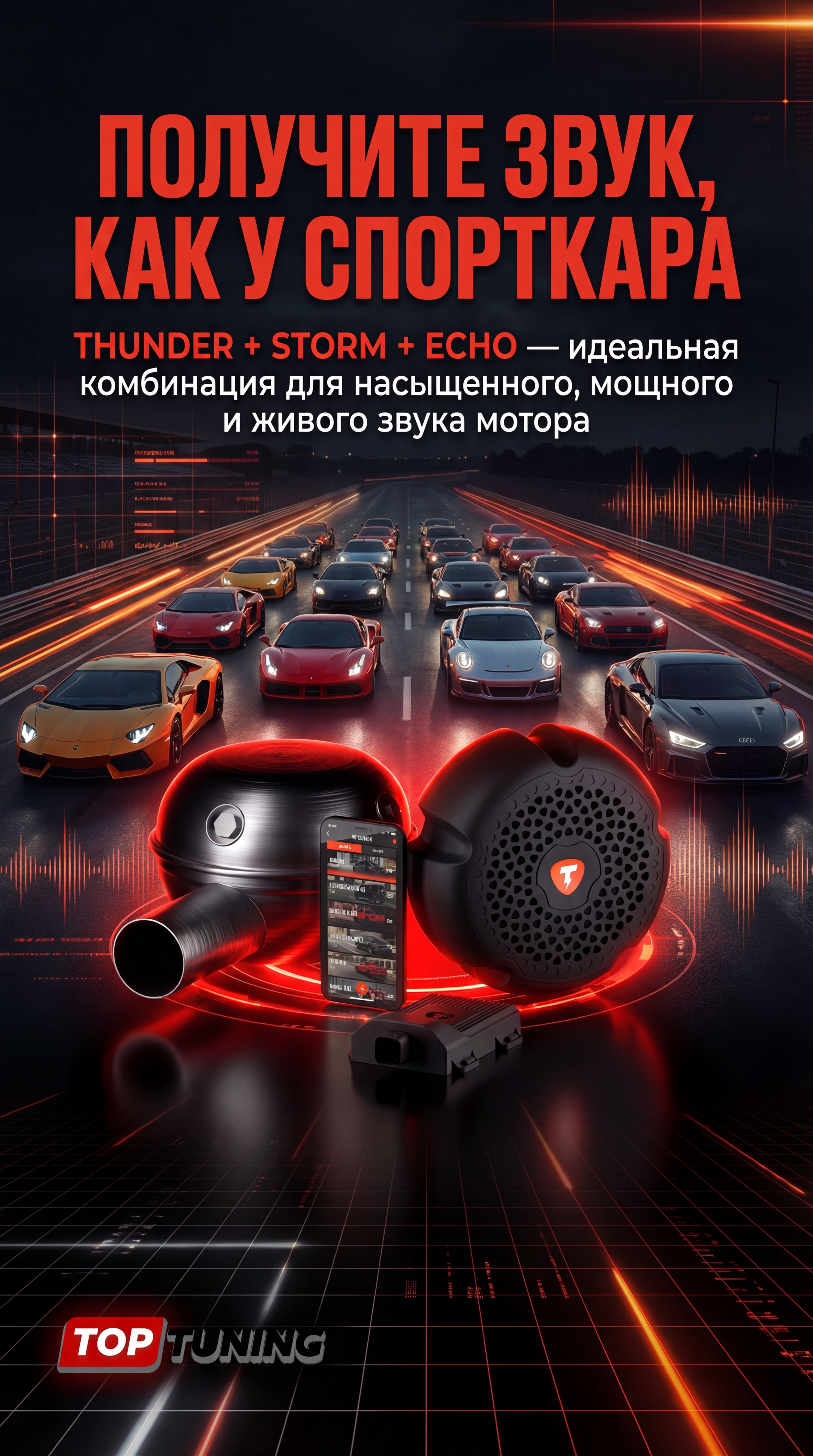 Благодаря подключению ECHO электронный выхлоп приобретает завершённую акустическую картину: прострелы, отклики при сбросе газа, характерные призвуки работы двигателя и холостого хода становятся более чёткими, насыщенными и реалистичными.